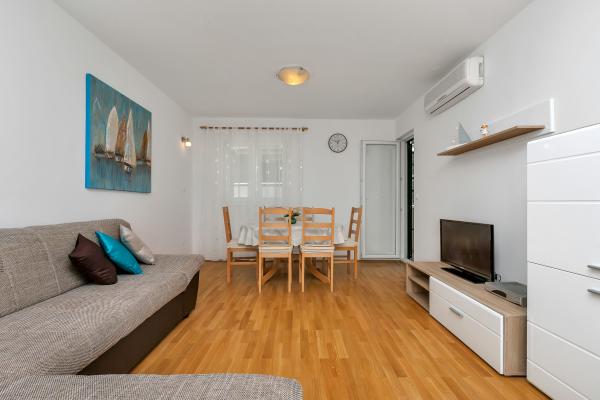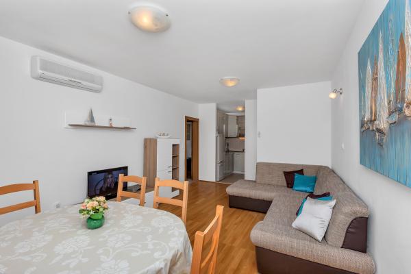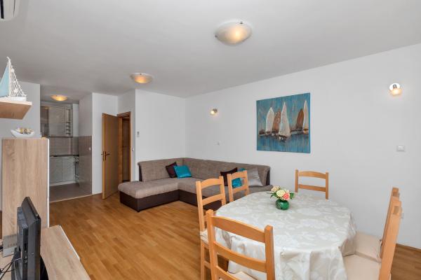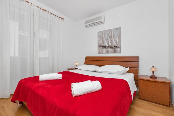 Wij bieden u een comfortabel en modern ingericht appartement in het centrum van Makarska, weg van het strand op slechts 50 meter. Het appartement bestaat uit twee slaapkamers, badkamer, keuken, woonkamer en balkon. Alle kamers zijn voorzien van airconditioning, tv, gratis internet. Parkeren is beveiligd. Het mooie, lange strand omgeven door pijnbomen ligt aan de voorkant van het huis. In de omgeving zijn restaurants, een speeltuin, een apotheek, winkels ... Voor reserveringen geldt een aanbetaling van 20%. Voor alle vragen ben ik tot uw beschikking. Met vriendelijke groet, Katarina Birgmajer