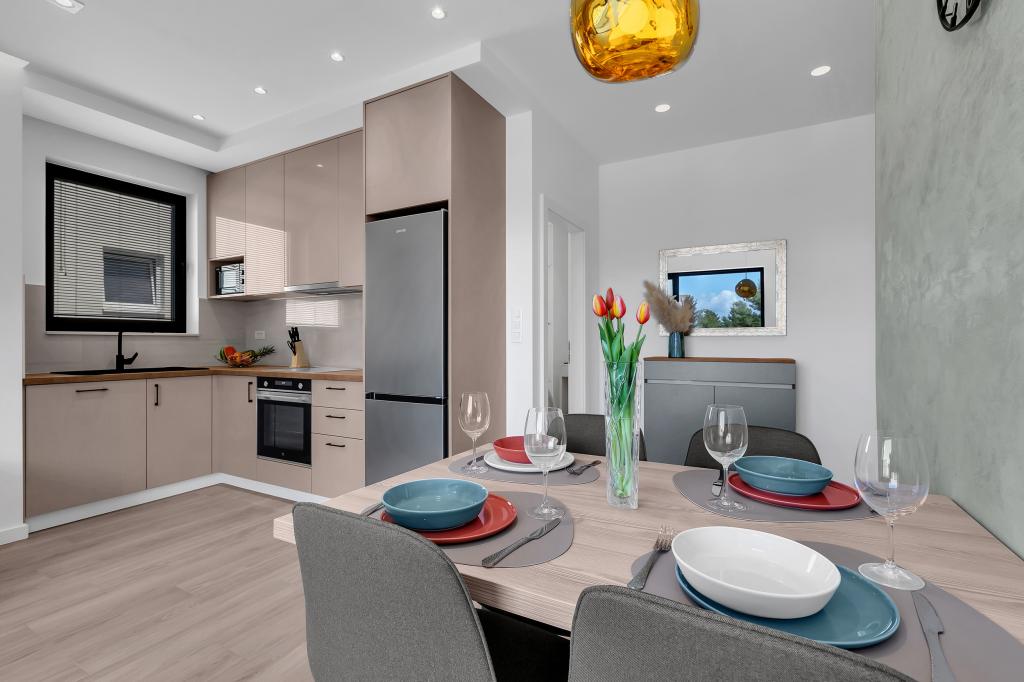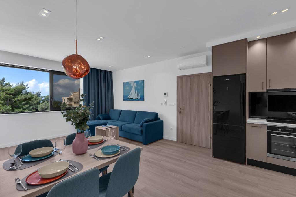 Gloednieuw, modern ingericht appartement uitgerust met alle huishoudelijke apparaten voor een comfortabeler verblijf, inclusief beddengoed en handdoeken. Er is privéparkeergelegenheid in het gebouw. Het appartement is voorzien van airconditioning in alle kamers.Wij zijn gelegen in een rustige buurt nabij een kinderspeelplaats en een winkel.Het balkon biedt uitzicht op de prachtige berg Biokovo en een deel van de Adriatische Zee.