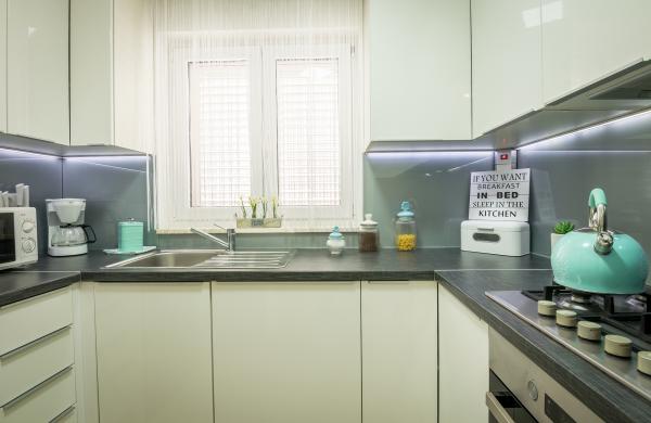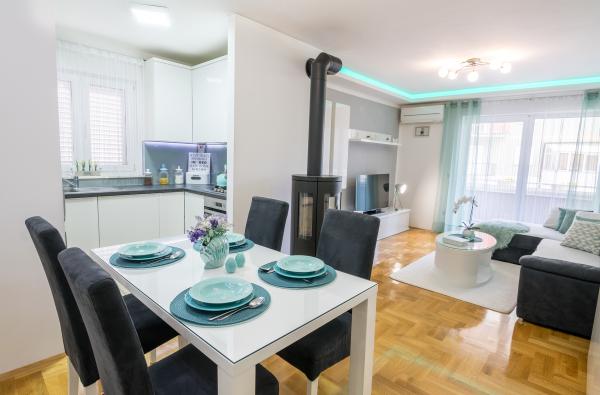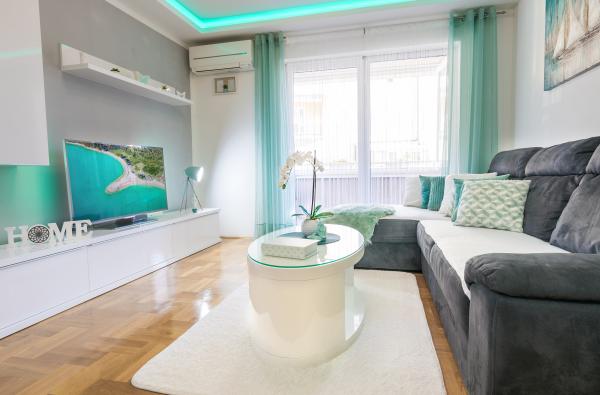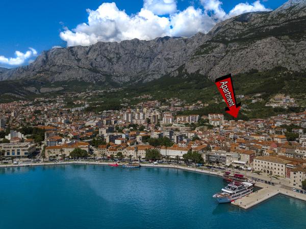 Modern ingericht appartement in het centrale deel van Makarska, 5 minuten lopen naar het oude gedeelte van de stad, 15 minuten lopen naar het strand. Parkeren is voorzien, gratis wifi. Elke kamer heeft een aparte tv, de keuken is volledig uitgerust.