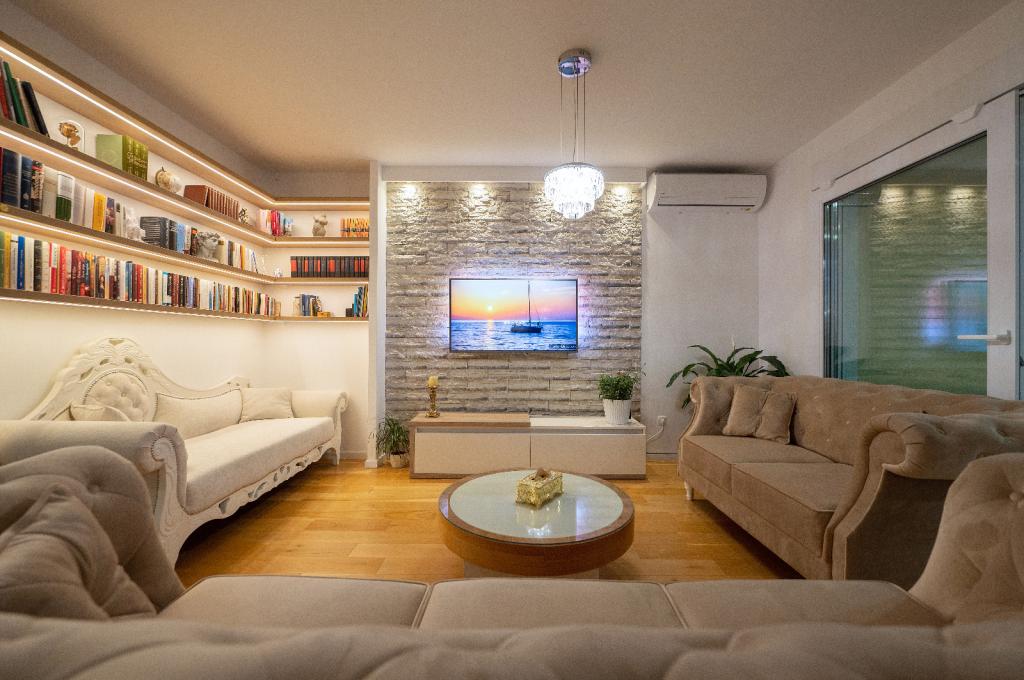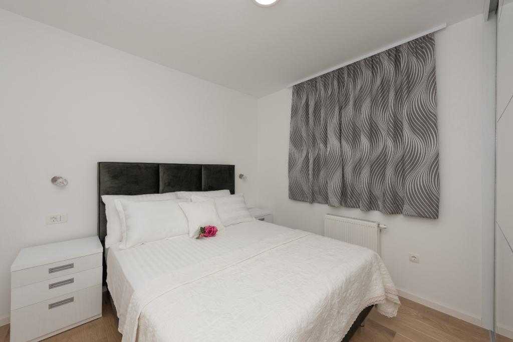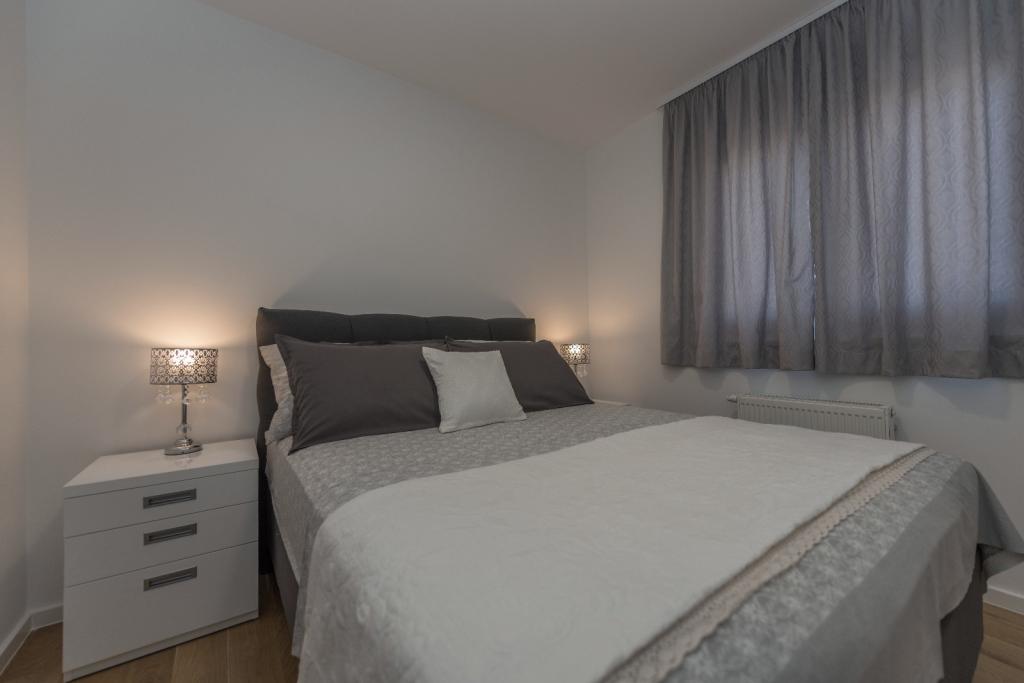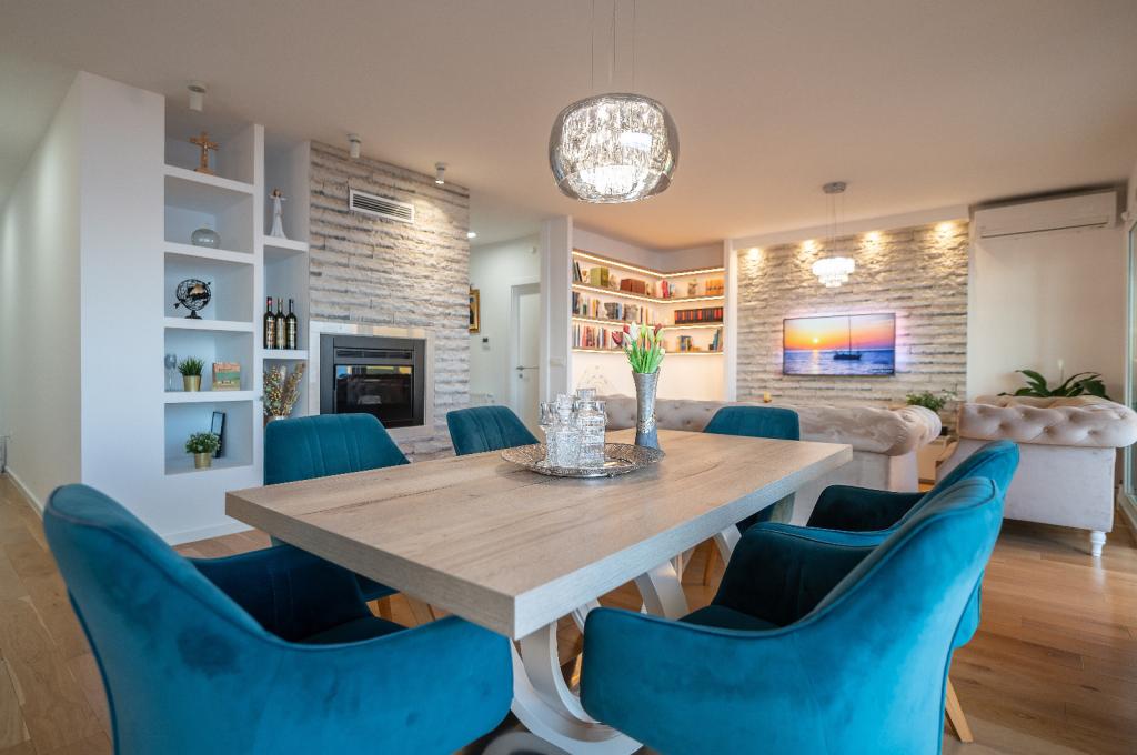 Penthouse Jure en Penthouse Nikola in Makarska zijn luxe en ruime appartementen van 135 m², ideaal voor een comfortabel en ontspannen verblijf. Elk appartement bestaat uit drie elegant ingerichte slaapkamers, twee modern uitgeruste badkamers, een garage en een groot terras met een spectaculair uitzicht op de zee en de stad, perfect om te genieten en te ontspannen. Gelegen in een rustige omgeving, op 2 km van het stadscentrum en 1 km van de zee, bieden ze een ideale combinatie van privacy en nabijheid van alle voorzieningen.