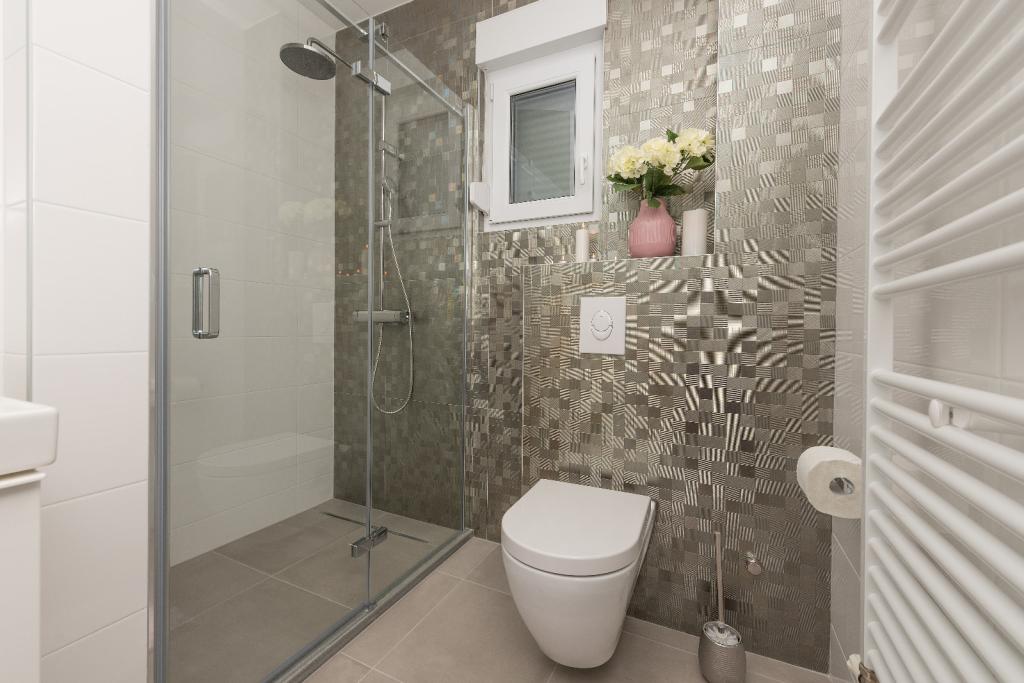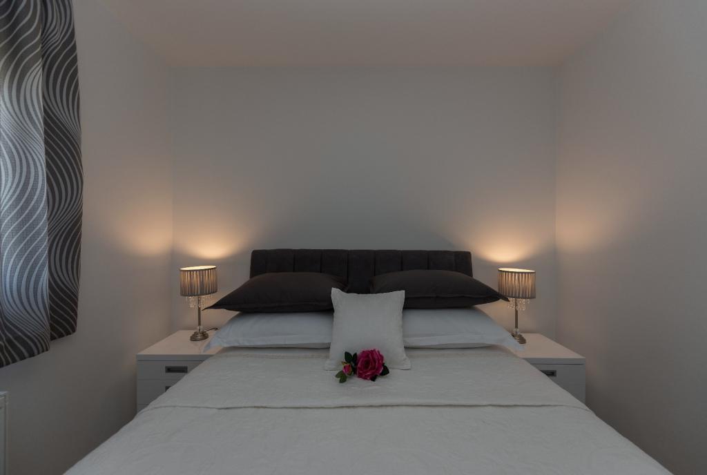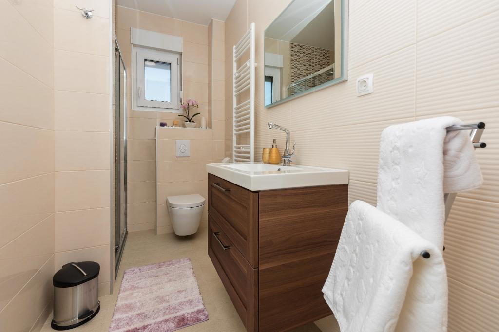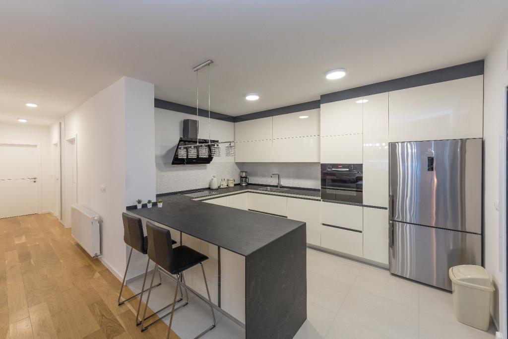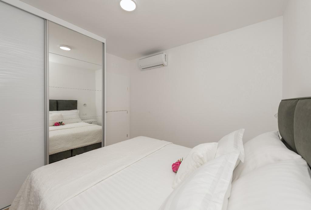 Penthouse Jure en Penthouse Nikola in Makarska zijn luxe en ruime appartementen van 135 m², ideaal voor een comfortabel en ontspannen verblijf. Elk appartement bestaat uit drie elegant ingerichte slaapkamers, twee modern uitgeruste badkamers, een garage en een groot terras met een spectaculair uitzicht op de zee en de stad, perfect om te genieten en te ontspannen. Gelegen in een rustige omgeving, op 2 km van het stadscentrum en 1 km van de zee, bieden ze een ideale combinatie van privacy en nabijheid van alle voorzieningen.