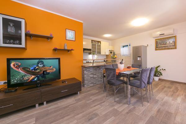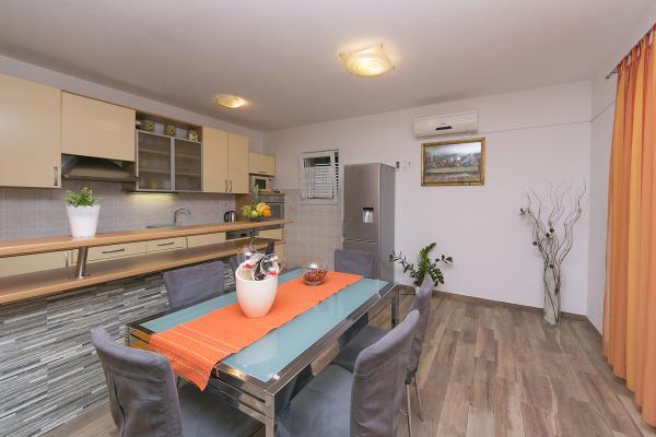 Welkom bij ons appartement Roso, die bestaat uit drie slaapkamers, twee badkamers, woonkamer, keuken en eetkamer. Het appartement is geschikt voor 2 of 3 families of voor 6 volwassenen en 2 kinderen, of voor 8 personen in elke combinatie. Het is ontworpen voor gezelligheid, vooral op het terras waar u kunt genieten van de zon, frisse lucht, drinken en lachen. Wie hier komt een keer, komt altijd terug! Appartement Rosa is gelegen in een relatief nieuw gebied, rustige wijk, gelegen op een geweldige locatie, ver genoeg (u zult niet horen verkeer) en dicht genoeg bij de hoofdweg van waaruit u kunt gaan in alle richtingen. Het strand lopen tot en met 15 minuten door interessante straten die er verder mee aan onze stad te weten te komen, kunt u ook naar beneden gaan en met de auto. In de omgeving is er een winkel waar u het nodige voedsel kunnen bekostigen en te drinken. We werken graag met mensen. Makarska is een toeristische stad, en al van het toerisme leven, in overeenstemming met wat we zullen proberen om een pauze in ons huis in de best mogelijke manier te bieden en bieden alle informeren