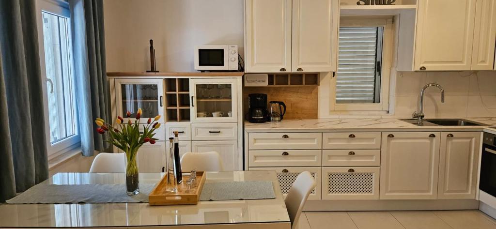 Villa Branka is een charmant huis met vijf aparte accommodaties, ideaal voor een ontspannen vakantie in de natuur. Omgeven door groen en gelegen op een unieke locatie met uitzicht op de Adriatische Zee aan de ene kant en de majestueuze Biokovo-berg aan de andere kant. Het is gelegen in een uitzonderlijk rustig deel van de Makarska Riviera, op een glooiende heuvel, ver weg van de toeristische drukte en het lawaai - perfect voor complete ontspanning en privacy. Tegelijkertijd ligt de villa op slechts 2 minuten rijden van het strand en op 5 minuten rijden van het centrum van Makarska, een pittoresk toeristisch stadje met een rijk aanbod aan voorzieningen, restaurants en prachtige stranden. De perfecte combinatie van rust, natuur en de nabijheid van alle belangrijke voorzieningen.