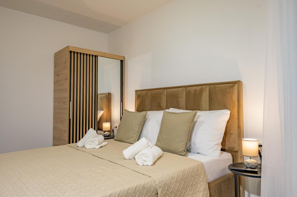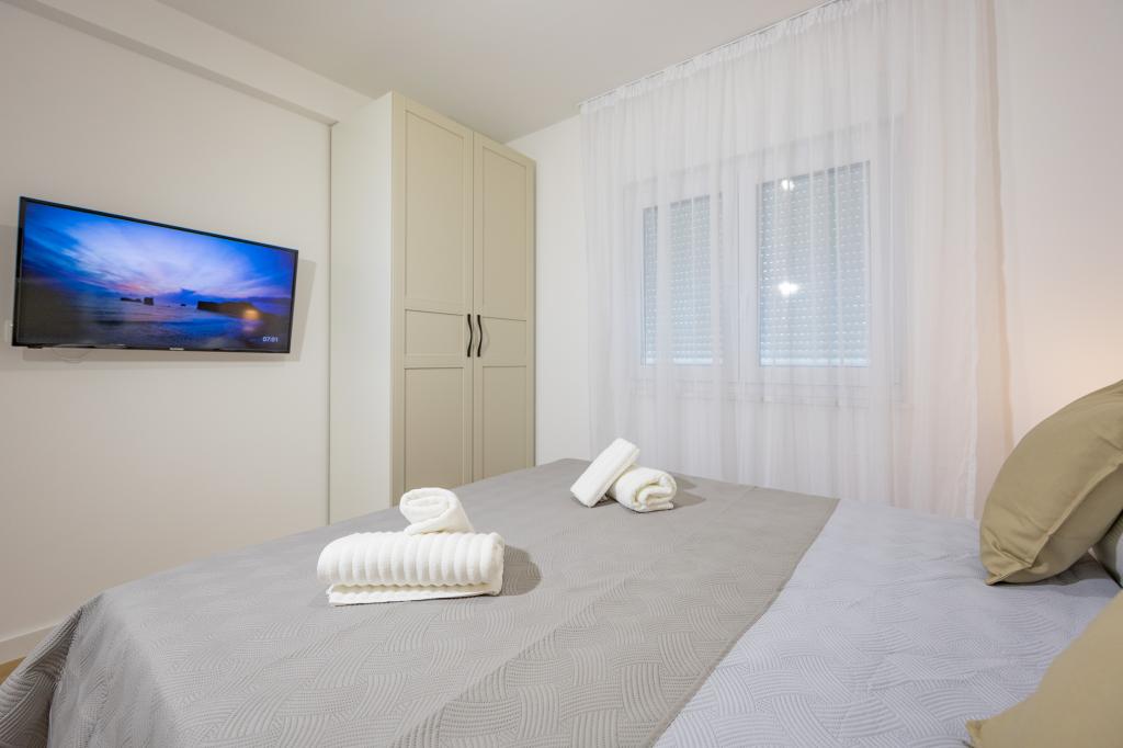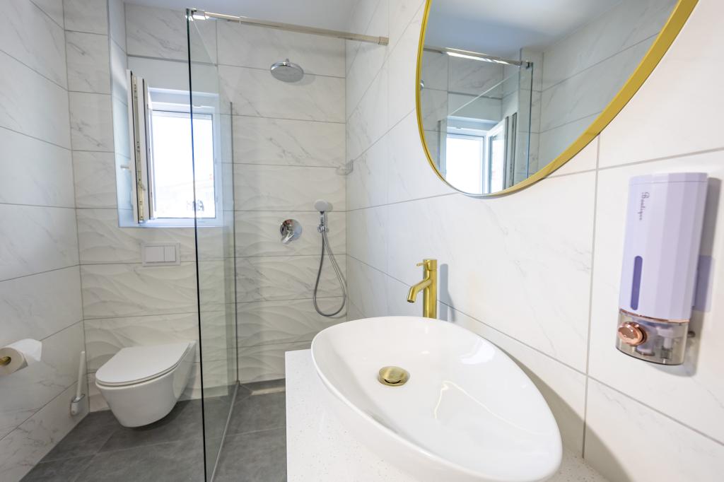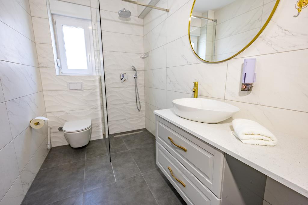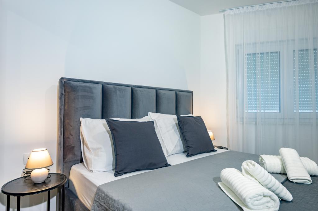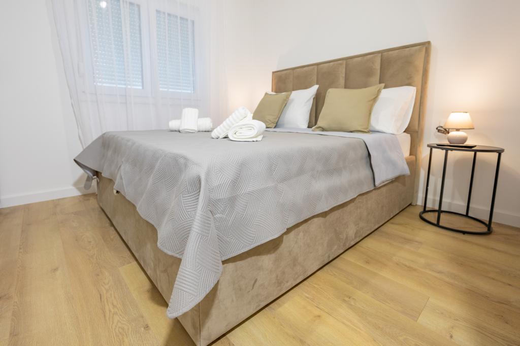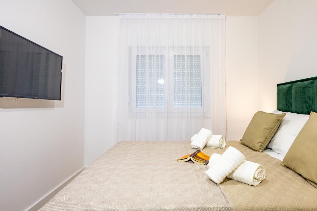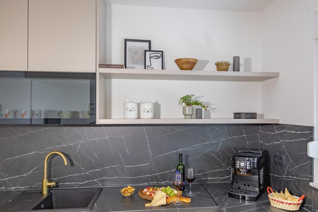 Elk appartement straalt modern design en een onlangs gerenoveerd interieur uit. In de ruime woonkamer, ingericht met smaakvol meubilair en eigentijdse details, voelt u zich meteen thuis. Het open concept verbindt de woonkamer op natuurlijke wijze met een volledig uitgeruste keuken, waar elegante aanrechtbladen, hoogwaardige apparatuur en alle ruimte die u nodig heeft om uw favoriete maaltijden te bereiden, op u wachten. De woonkamer komt uit op een aangenaam balkon - een ideale plek voor een kopje koffie in de ochtend of een avondje ontspannen met een glas wijn en een onvergetelijke zonsondergang boven de Adriatische Zee. Elk appartement beschikt over twee comfortabele slaapkamers met tweepersoonsbedden, voorzien van zacht beddengoed en veel opbergruimte, een moderne badkamer en een extra toilet. De appartementen zijn voorzien van airconditioning en van alle gemakken voorzien: satelliet-tv, internet, wasmachine, vaatwasser, koffiezetapparaat en alles wat u nodig heeft voor een aangenaam en zorgeloos verblijf.