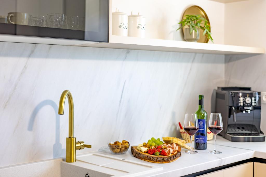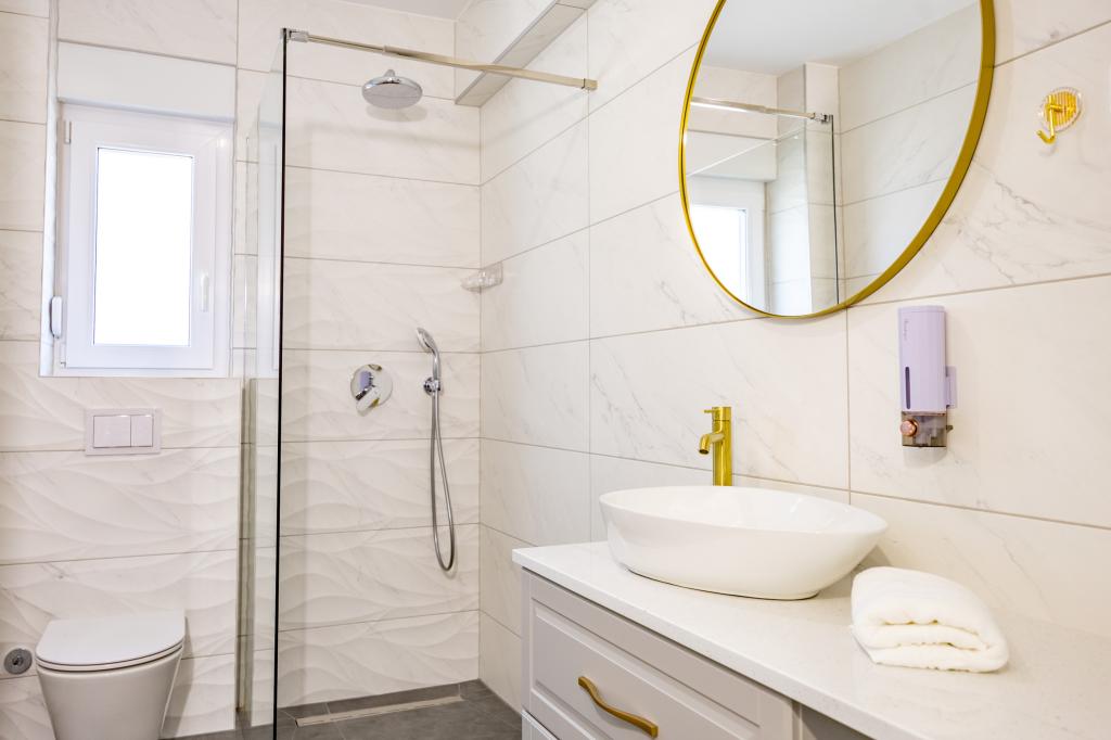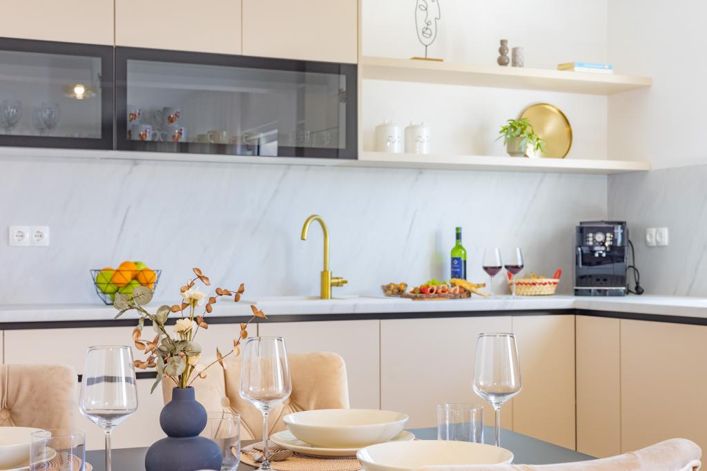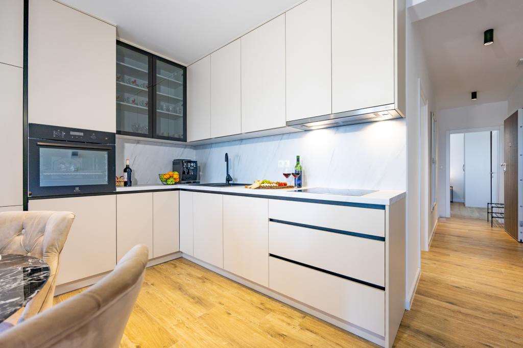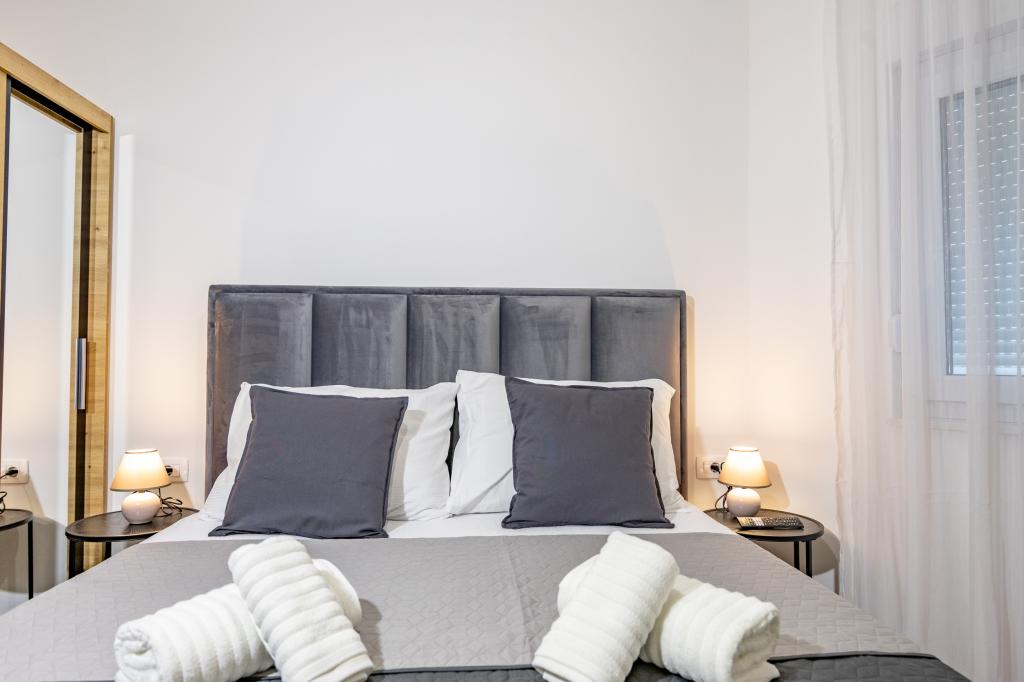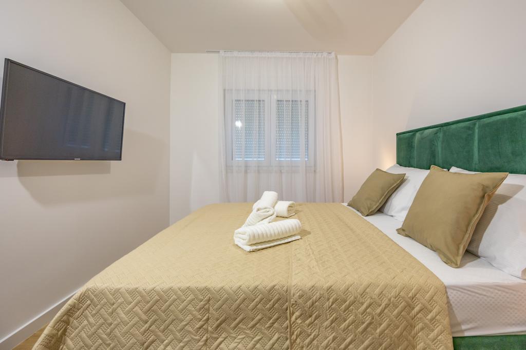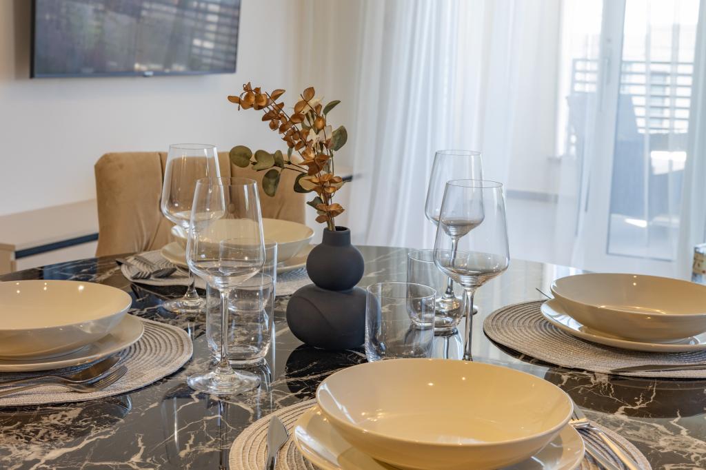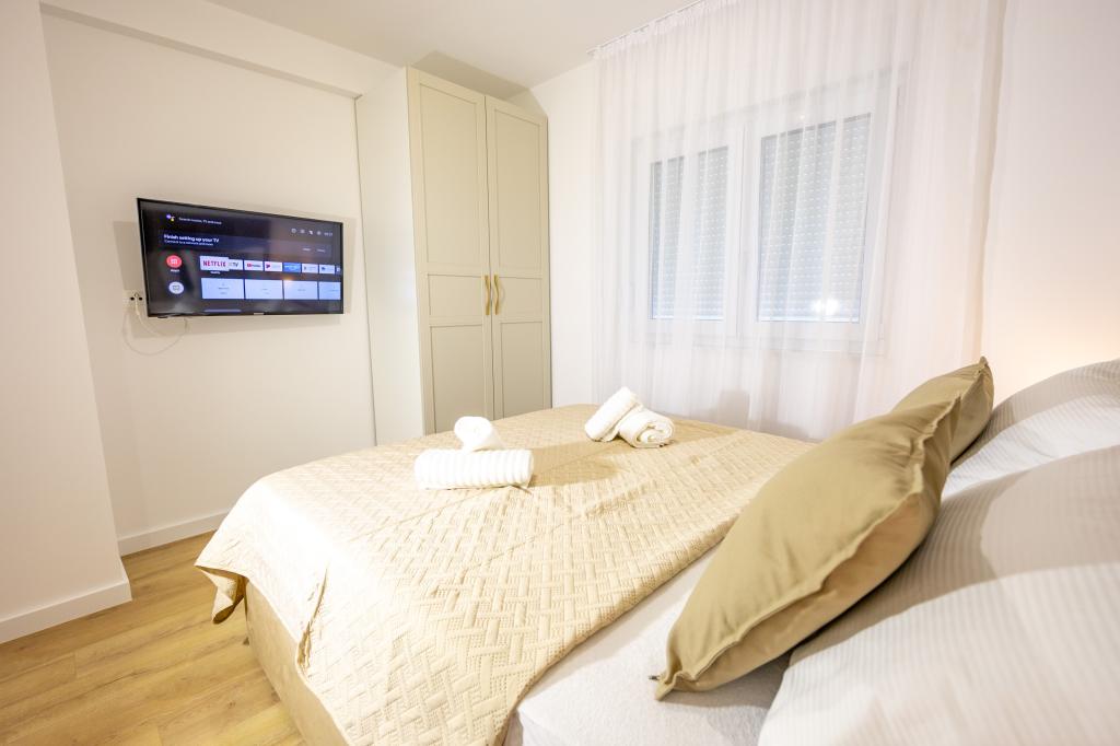Elk appartement straalt modern design en een onlangs gerenoveerd interieur uit. In de ruime woonkamer, ingericht met smaakvol meubilair en eigentijdse details, voelt u zich meteen thuis. Het open concept verbindt de woonkamer op natuurlijke wijze met een volledig uitgeruste keuken, waar elegante aanrechtbladen, hoogwaardige apparatuur en alle ruimte die u nodig heeft om uw favoriete maaltijden te bereiden, op u wachten. De woonkamer komt uit op een aangenaam balkon - een ideale plek voor een kopje koffie in de ochtend of een avondje ontspannen met een glas wijn en een onvergetelijke zonsondergang boven de Adriatische Zee. Elk appartement beschikt over twee comfortabele slaapkamers met tweepersoonsbedden, voorzien van zacht beddengoed en veel opbergruimte, een moderne badkamer en een extra toilet. De appartementen zijn voorzien van airconditioning en van alle gemakken voorzien: satelliet-tv, internet, wasmachine, vaatwasser, koffiezetapparaat en alles wat u nodig heeft voor een aangenaam en zorgeloos verblijf.