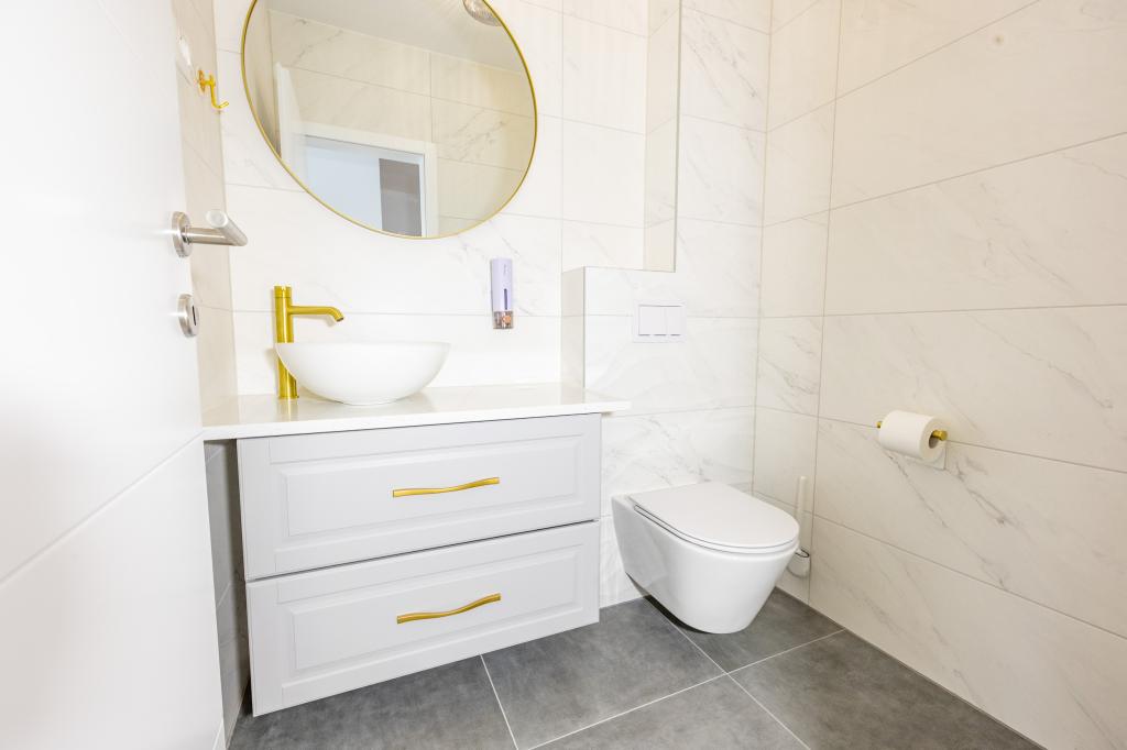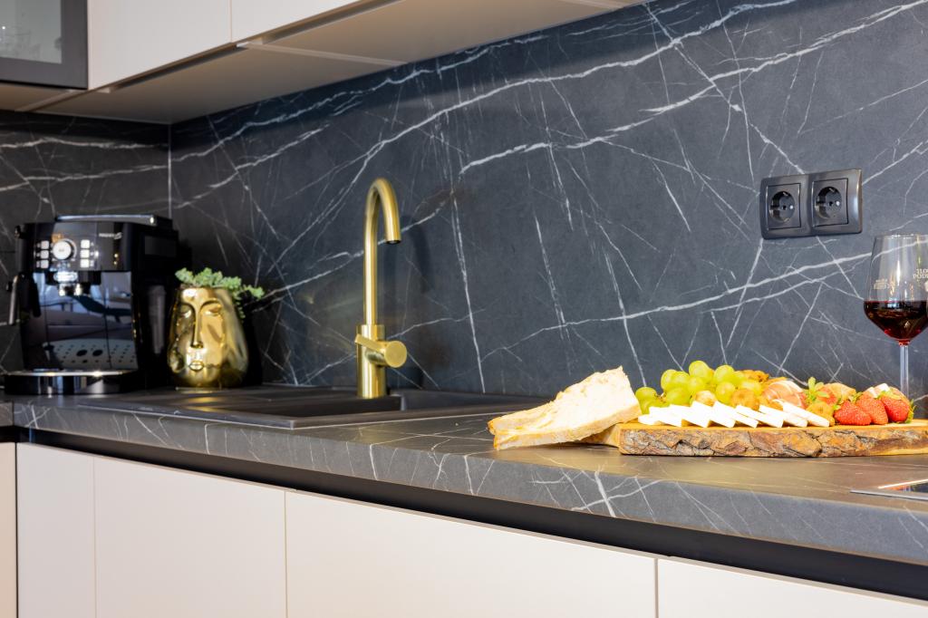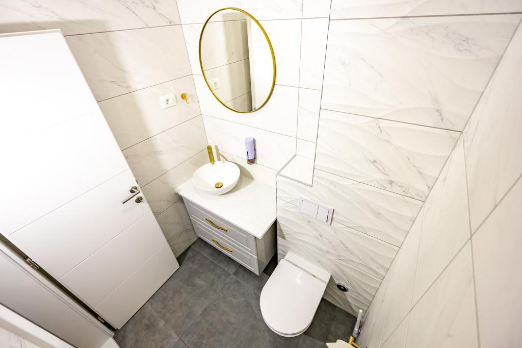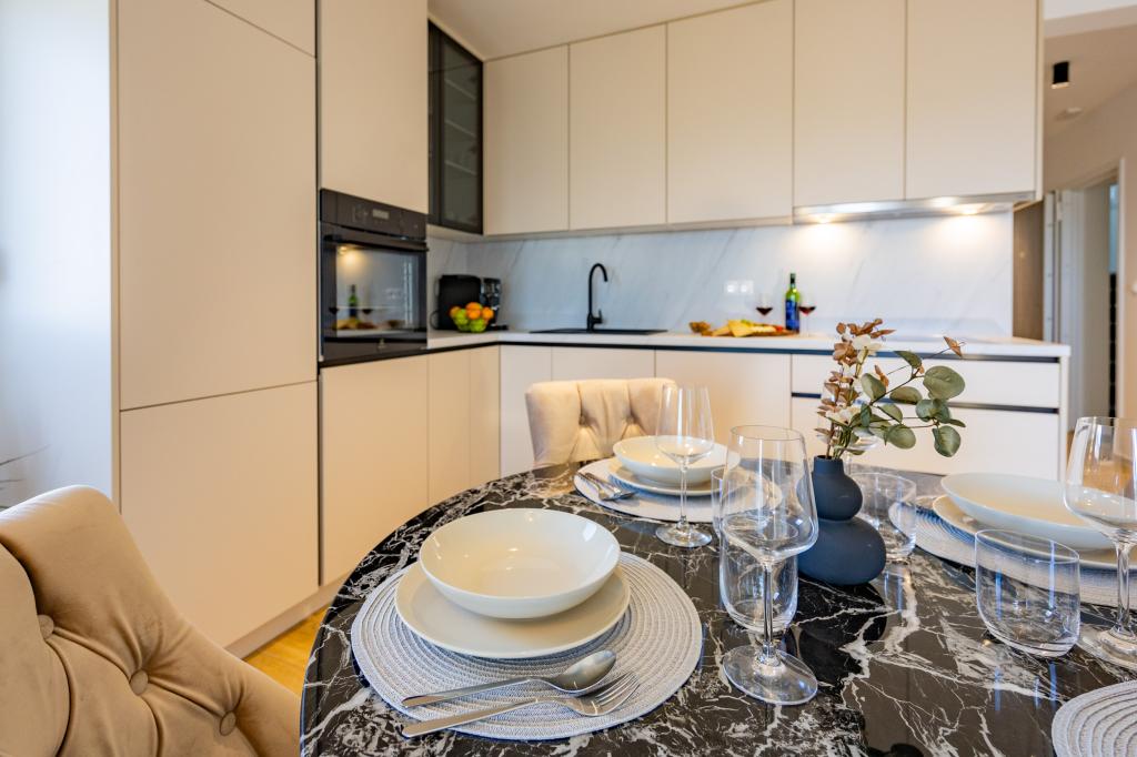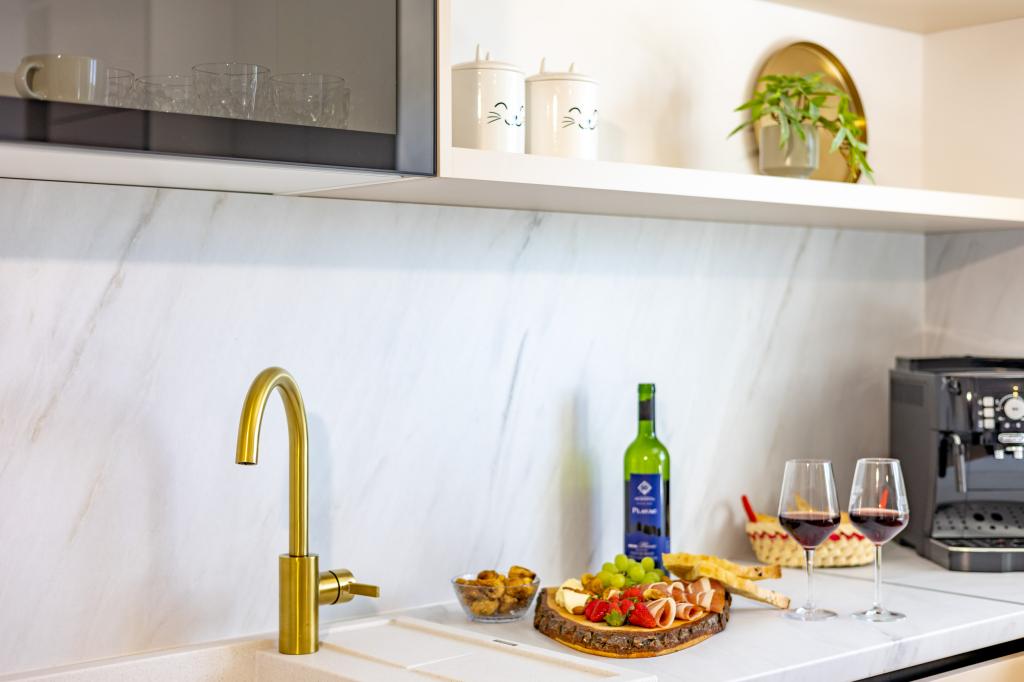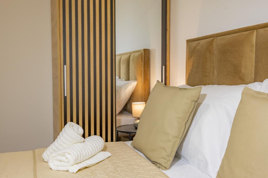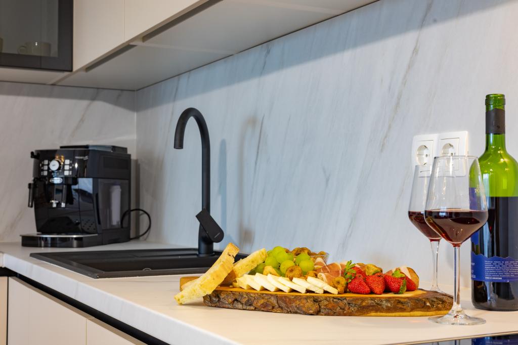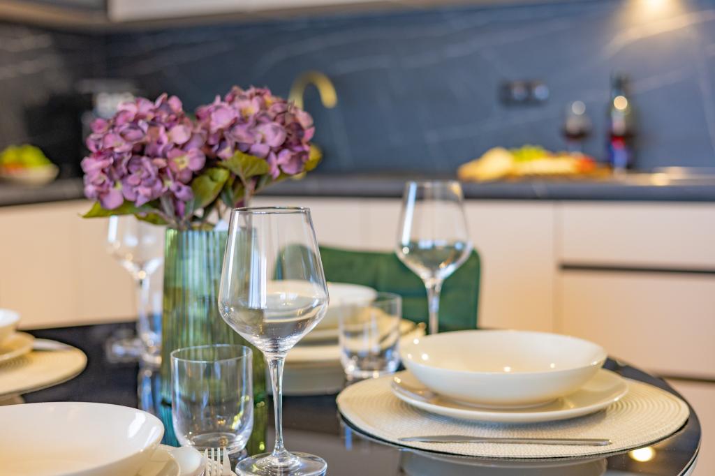 Elk appartement straalt modern design en een onlangs gerenoveerd interieur uit. In de ruime woonkamer, ingericht met smaakvol meubilair en eigentijdse details, voelt u zich meteen thuis. Het open concept verbindt de woonkamer op natuurlijke wijze met een volledig uitgeruste keuken, waar elegante aanrechtbladen, hoogwaardige apparatuur en alle ruimte die u nodig heeft om uw favoriete maaltijden te bereiden, op u wachten. De woonkamer komt uit op een aangenaam balkon - een ideale plek voor een kopje koffie in de ochtend of een avondje ontspannen met een glas wijn en een onvergetelijke zonsondergang boven de Adriatische Zee. Elk appartement beschikt over twee comfortabele slaapkamers met tweepersoonsbedden, voorzien van zacht beddengoed en veel opbergruimte, een moderne badkamer en een extra toilet. De appartementen zijn voorzien van airconditioning en van alle gemakken voorzien: satelliet-tv, internet, wasmachine, vaatwasser, koffiezetapparaat en alles wat u nodig heeft voor een aangenaam en zorgeloos verblijf.