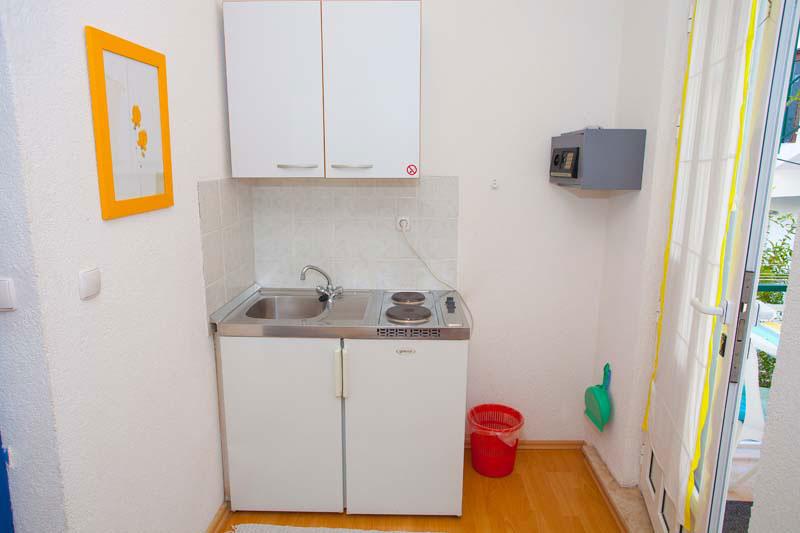 Een ruim en comfortabel vakantiehuis met verschillende appartementen en studio's voor twee tot vijf personen, ligt in het mooiste, westelijke deel van de populaire en favoriete zomerplaats, het prachtige Makarska. Makarska ligt aan de voet van de Biokovo-berg, tussen de centrale en zuidelijke Adriatische Zee, en is daarmee de parel van de Dalmatische kust. Villa Jarak ligt op een paar minuten lopen van een prachtig kiezelstrand en vlakbij is een populaire boulevard met een ruim aanbod aan restaurants, cafés en winkels. Het huis is zeer netjes en de dagelijkse schoonmaak is bij de prijs inbegrepen. Diverse soorten planten en bloemen dragen bij aan de idyllische sfeer.