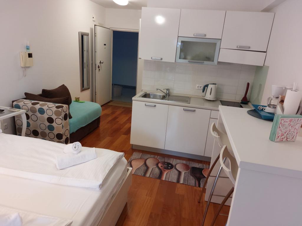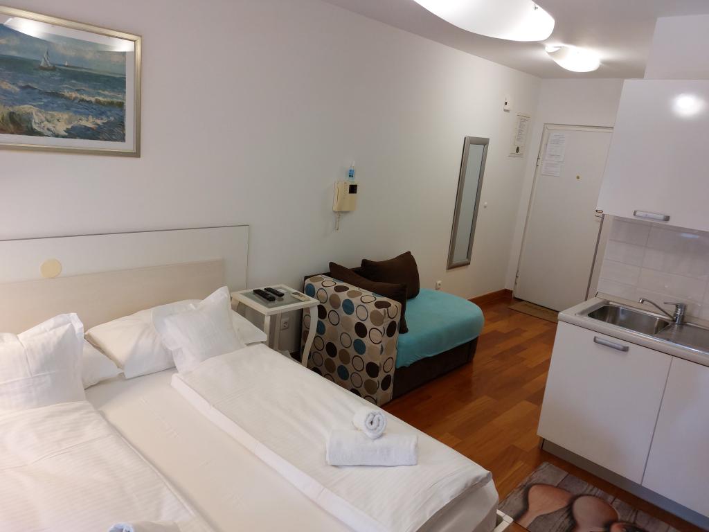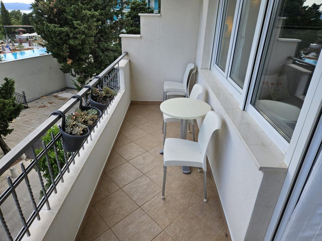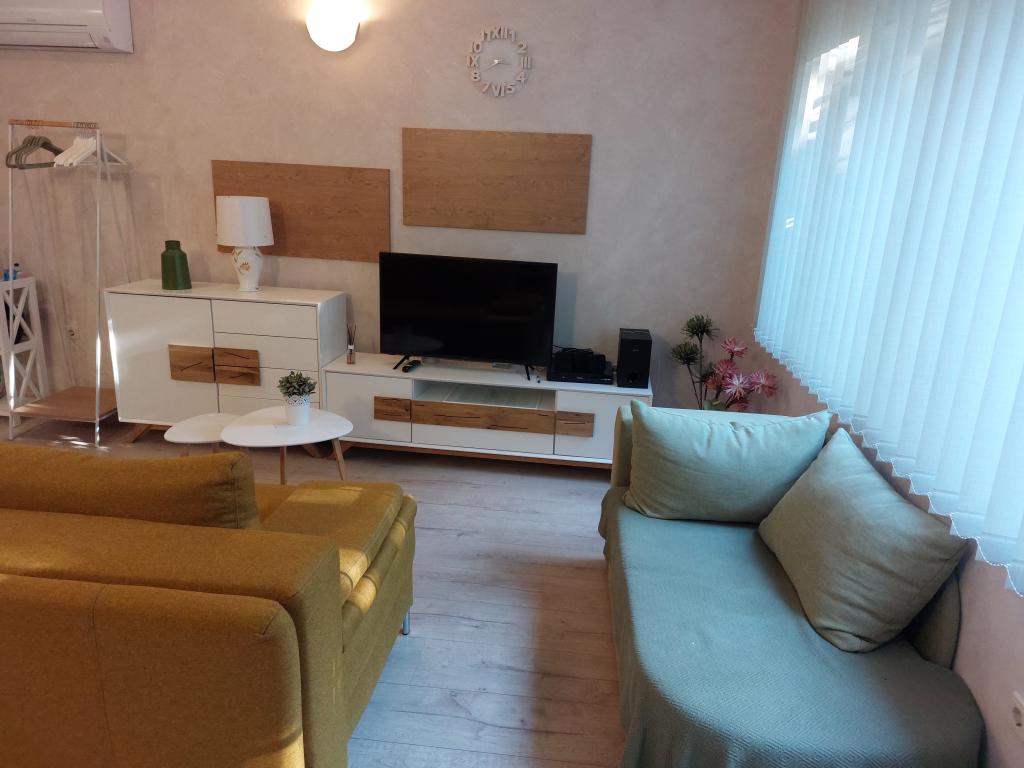 Onze appartementen zijn modern en volledig uitgerust om uw verblijf zo comfortabel en zorgeloos mogelijk te maken. Elk appartement beschikt over een strijkijzer en strijkplank, föhn, filterkoffiezetapparaat, waterkoker en magnetron. Gasten hebben ook toegang tot complete keukengerei voor het bereiden en serveren van maaltijden. Alle accommodaties hebben een flatscreen-tv, gratis wifi en zit- en ontspanningsruimtes binnen en buiten. De accommodaties zijn voorzien van airconditioning. Parkeren dient vooraf gereserveerd te worden vanwege het beperkte aantal parkeerplaatsen op het terrein. Bij aankomst liggen er schone lakens en handdoeken voor u klaar, die volgens afspraak worden verschoond. Een babybedje is op voorafgaande aanvraag gratis beschikbaar. Op het terrein bevindt zich een gemeenschappelijke binnenplaats met zitmeubilair, omgeven door mediterrane planten – een ideale plek om te ontspannen. De accommodatie is gelegen in een rustige omgeving, op de tweede rij vanaf de zee, op slechts 2 minuten lopen van het strand en op 10 minuten loopafstand van het centrum.
