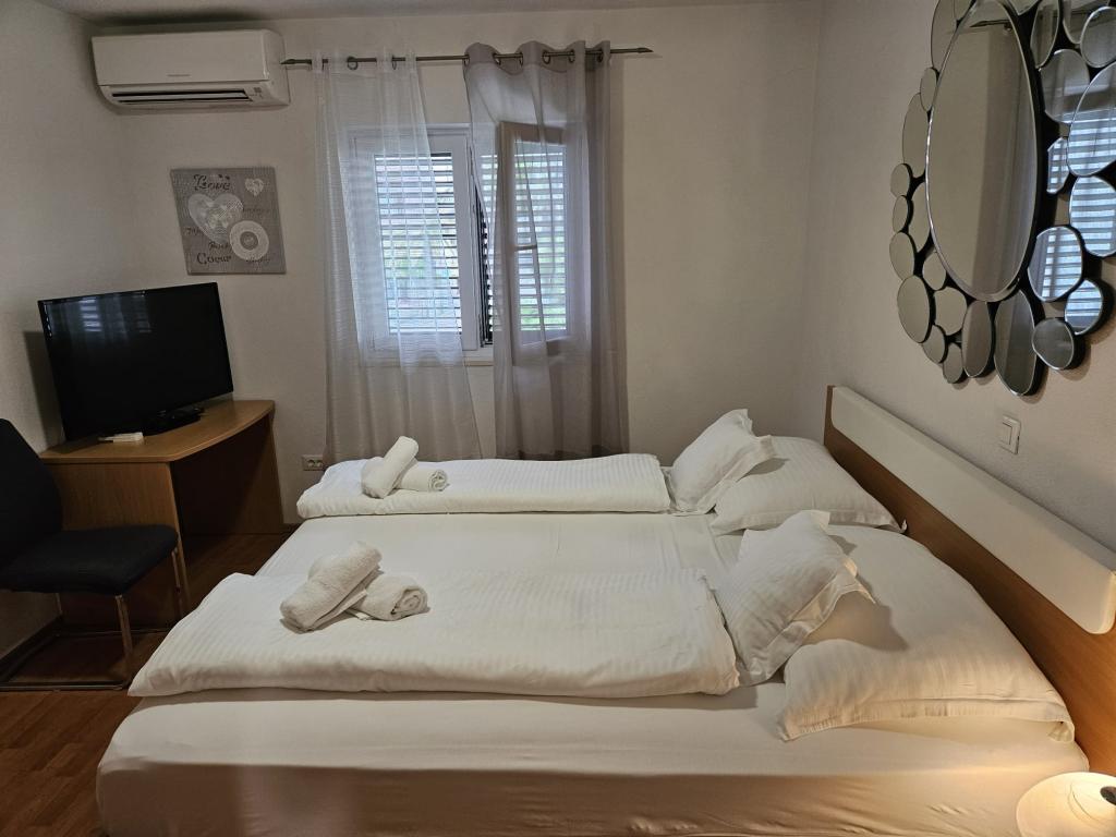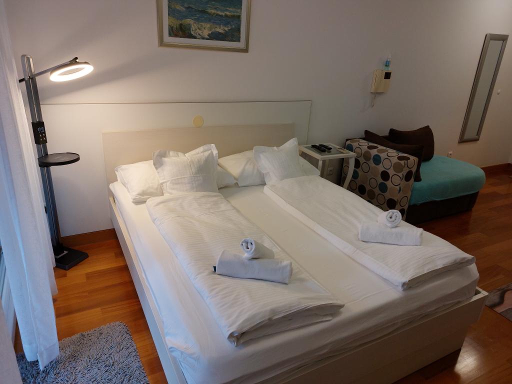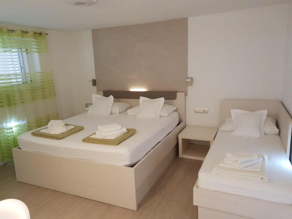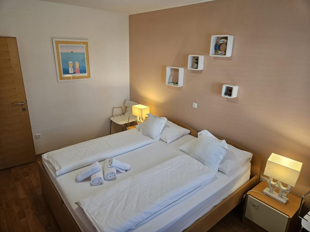 Onze appartementen zijn modern en volledig uitgerust om uw verblijf zo comfortabel en zorgeloos mogelijk te maken. Elk appartement beschikt over een strijkijzer en strijkplank, föhn, filterkoffiezetapparaat, waterkoker en magnetron. Gasten hebben ook toegang tot complete keukengerei voor het bereiden en serveren van maaltijden. Alle accommodaties hebben een flatscreen-tv, gratis wifi en zit- en ontspanningsruimtes binnen en buiten. De accommodaties zijn voorzien van airconditioning. Parkeren dient vooraf gereserveerd te worden vanwege het beperkte aantal parkeerplaatsen op het terrein. Bij aankomst liggen er schone lakens en handdoeken voor u klaar, die volgens afspraak worden verschoond. Een babybedje is op voorafgaande aanvraag gratis beschikbaar. Op het terrein bevindt zich een gemeenschappelijke binnenplaats met zitmeubilair, omgeven door mediterrane planten – een ideale plek om te ontspannen. De accommodatie is gelegen in een rustige omgeving, op de tweede rij vanaf de zee, op slechts 2 minuten lopen van het strand en op 10 minuten loopafstand van het centrum.