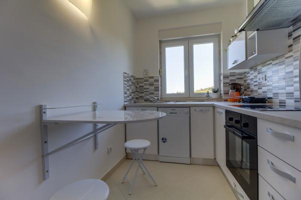 Nieuwe, moderne appartement is gelegen tussen twee baaien, Valdarke en St. Martin die ook het oudste deel van de stad. Het is een zeer rustige buurt en zeer dicht bij het centrum, 800m. Het strand die wordt bereikt door een verharde rijstrook 100m. Natuurlijk in de omgeving zijn er andere stranden, kun je te voet of korte rit. Het appartement is gelegen op de eerste verdieping en bestaat uit een slaapkamer, keuken en badkamer in de voorkant van de commode baby en er is een kinderbedje. De keuken is modern uitgerust met vaatwasser, koelkast en vriezer, oven, koffiezetapparaat en alle benodigde keukengerei. Badkamer met douche en wasmachine. De kamer is voorzien van een tafel met twee fauteuils om te ontspannen en een bank die zich uitstrekt tot in een bed 150x200cm en een kledingkast. Het is mogelijk om een extra bed te regelen. De kamer is voorzien van airconditioning en uitgerust met internet-tv en wi-fi. Na eerdere overeenkomst mag de leiding netjes huisdieren.