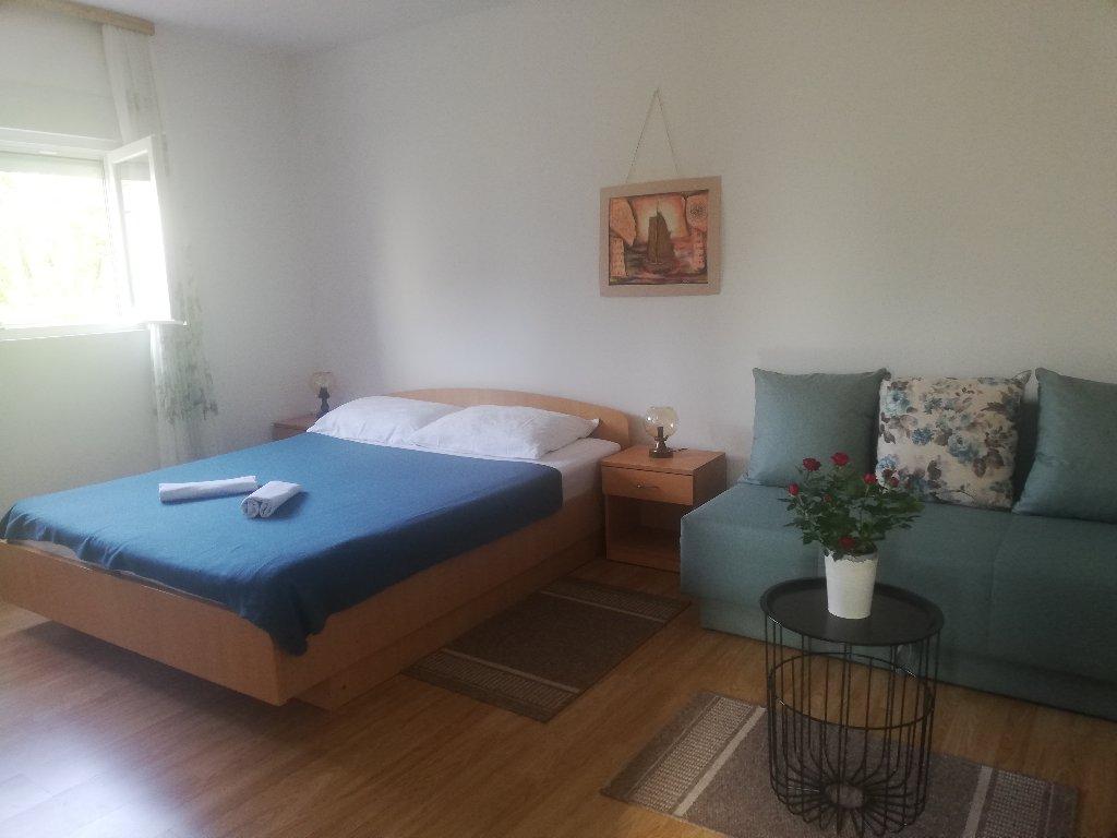 Studio-appartement voor maximaal 3 personen, bestaande uit een kamer met een tweepersoonsbed en een extra bed, een keuken, een badkamer en een terras. Parkeerplaats voor de auto bevindt zich op het erf van de woning. Het appartement is volledig gemeubileerd. Het duurt 5-8 minuten om naar het dichtstbijzijnde strand te lopen, en in de buurt zijn er winkels, een markt, een centrum, restaurants, een busstation... De stranden zijn voornamelijk kiezel- en betonstranden. Rustige locatie.