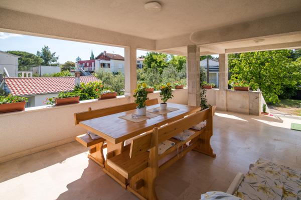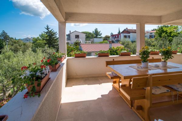 Mediterrane vegetatie, de bedwelmende geur van de zee, rust en stilte, dicht bij het strand, restaurants en winkels te beschrijven het best de plaats waar is ons appartement. Gelegen op 200 m van het strand Hotel Malin en 1000m van het centrum van de stad zijn de perfecte keuze voor uw familie vakantie. Het appartement heeft een eigen terras, gemeenschappelijke tuin en een prive parkeerplaats. Het heeft een eigen entree, binnenplaats, parkeren en alle mogelijkheden voor een rustige en intieme vakantie. Appartement 4 1 met twee slaapkamers biedt accommodatie voor 5 personen. Gelegen op de tweede verdieping. Het heeft een balkon met uitzicht op de zee. Het appartement is voorzien van airconditioning, een satelliet-tv en draadloos internet.