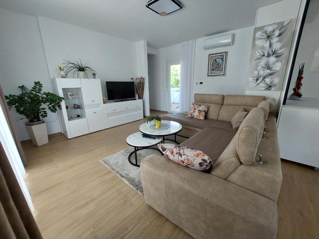 Volledig en modern ingericht tweekamerappartement met zwembad in een rustige omgeving, gelegen in Sv. Anton niet ver van Malinska. Afmeting 110m2. Superieure accommodatie voor familie of gasten die een aangename en rustige vakantie willen. Twee slaapkamers met eigen badkamer. Mogelijke accommodatie voor maximaal 6 personen. Afgesloten parkeerplaats. Luchtverfrissend. Het zwembad wordt alleen gebruikt door gasten van het appartement.
