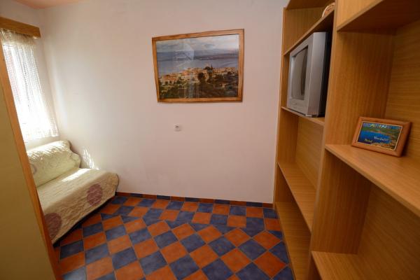 Elk appartement heeft een aparte ingang. De keuken is volledig uitgerust: fornuis met oven, magnetron, koelkast en vriezer, evenals keukengerei voor het bereiden van eten en service voor het nuttigen van eten en drinken. De eetkamer-woonkamer is uitgerust met een led-tv met satellietontvanger. Aparte slaapkamer (een of twee) en toilet badkamer met douche. In het tuinhuisje op de binnenplaats vindt u een rustieke barbecue en een zomerkeuken. Elk appartement heeft een groot privéterras met een prachtig panoramisch uitzicht over Malinska en de hele Kvarner-baai vanaf een hoogte van meer dan 100 meter. Beddengoed en handdoeken zijn bij de prijs inbegrepen en worden elke 7 dagen verschoond. Parkeren kan in de tuin of op de oprit. Het stadscentrum ligt op ongeveer 100 meter afstand, evenals de dichtstbijzijnde winkel