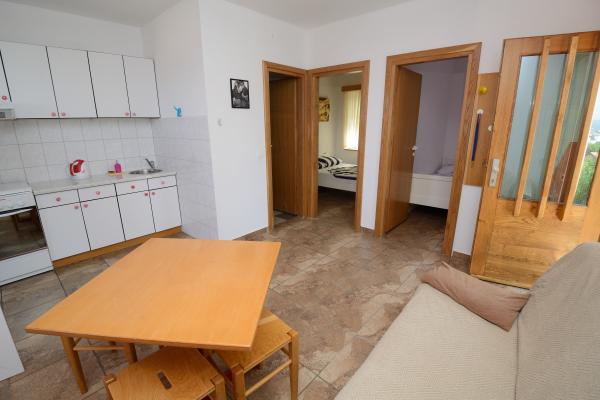 Appartementen Hrusta, discreet gescheiden van het dorp, in een rustige groene omgeving, met een prachtig panoramisch uitzicht op zee. Alle appartementen beschikken over WiFi, SAT, TV, parkeren in de tuin of op de oprit en airconditioning, alles inbegrepen in de prijs. Het strand is 5 minuten met de auto of 20 minuten lopen. Appartementen op de eerste verdieping (A4 2) hebben 2 slaapkamers, woonkamer en keuken en een groot privéterras met uitzicht op zee. Appartementen op de tweede verdieping (A2 2) hebben 1 slaapkamer, woonkamer en keuken en een groot privéterras met uitzicht op zee. Het appartement op de begane grond (A2 1) heeft 1 slaapkamer, woonkamer, privéterras met uitzicht op het appartement, rolstoeltoegankelijk is mogelijk. Alle gasten hebben de beschikking over een tuinhuis met barbecue en zomerkeuken en enorme banken.