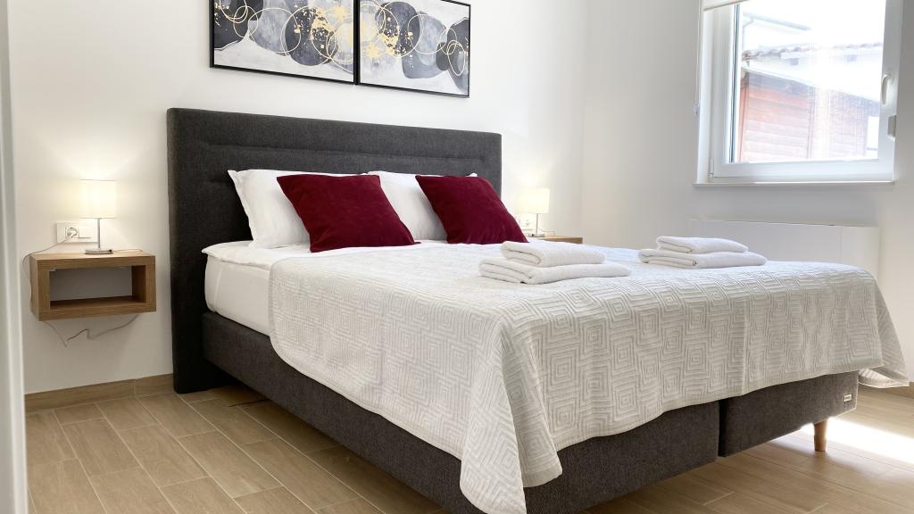Villa Malina is een appartementencomplex gelegen in een rustig deel van het dorp. Het beschikt over drie modern ingerichte appartementen van 50, 55 en 60 m² met aparte ingangen en beveiligde parkeerplaatsen op het erf. Elk appartement heeft een woonkamer, slaapkamer, badkamer, keuken en een overdekt terras. In de woonkamer staat een slaapbank die als extra bed voor twee personen kan dienen. De keuken is uitgerust met serviesgoed, keukendoeken, oven, magnetron, koelkast met vriezer, waterkoker, elektrische kookplaat, broodrooster en vaatwasser. Verder zijn er een internetverbinding, airconditioning, stofzuiger, wasmachine en föhn. Een babybedje is op aanvraag gratis beschikbaar. Bij een verblijf van 10 dagen of langer ontvangt u 10% korting.