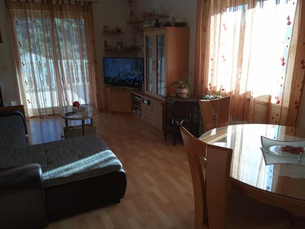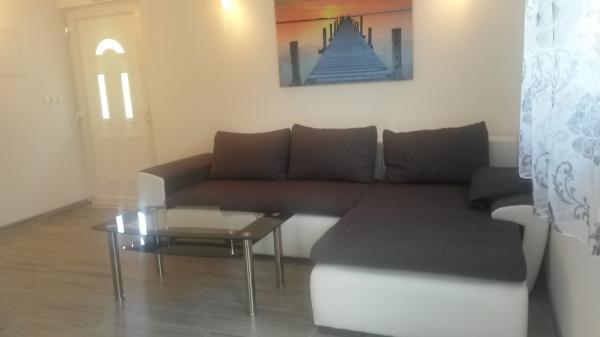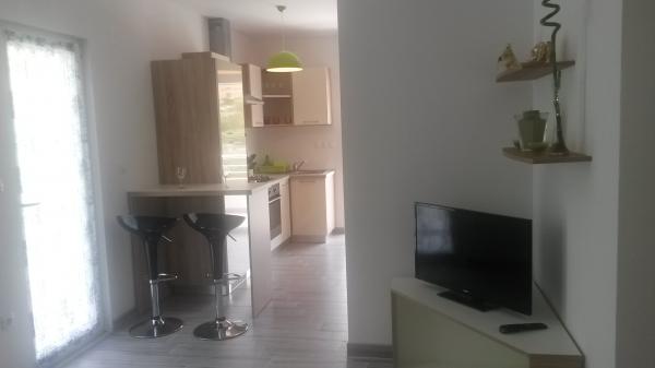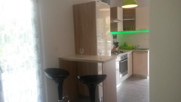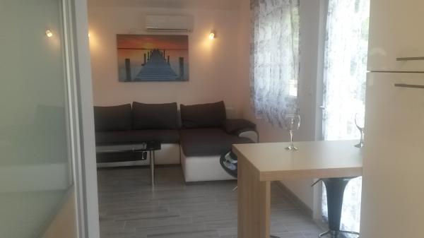 P en P nieuw gebouwde moderne appartementen. Capaciteit van de accommodatie voor twee personen plus twee extra bedden (groot uitklapbaar bank). De keuken is voorzien van alle benodigde keukenapparatuur: keuken bestek en kookgerei, waterkoker, koelkast, koffiezetapparaat. Gasten Gratis aanbieding: Wi-Fi, Kluis, Air, schone lakens en handdoeken, wc-papier, zeep, dekens, parkeren, gebruik van de barbecue en tuin. Het appartement is omgeven door pijnbomen en het terras slak uitzicht prachtig uitzicht op zee. De afstand van naburige huizen. Het is ideaal voor een gezinsvakantie. Het strand ligt op 5 minuten lopen, geschikt voor kleine kinderen, en omvat alle faciliteiten voor recreatie.