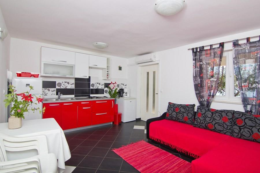 Apartments Maya is gelegen in een klein toeristisch stadje Marušići, 14 km ten zuiden van Omis en 22 km van Makarska. De geuren van mediterrane vegetatie, zonovergoten kiezel- en rotsstranden en verborgen baaien zullen u een onvergetelijke vakantie bezorgen in een rustige omgeving. Rijk nachtleven en sportfaciliteiten langs Makarska Riviera en de stad Omis zullen iedereen aantrekken die een actieve vakantie en plezier wil. De faciliteit bevat 2 appartementen met terrassen en uitzicht op zee, eigen parkeerplaatsen en een buitenbarbecue om te gebruiken. Elk appartement is uitgerust met airconditioning, satelliet TV en wi-fi winkel, restaurant en busstation liggen op 300-500 m afstand.