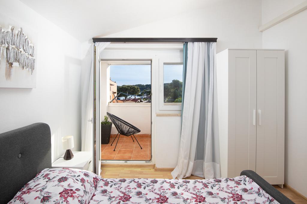 Appartementen op de 1e en 2e verdieping voor 4-5 personen verwijderd van het beroemde zandstrand Bijeca70 meter. De appartementen liggen op 2 minuten lopen van het zomerse stadscentrum. Er is een jachthaven, talloze restaurants, winkels, een entertainmentcentrum voor kinderen en een prachtig dennenbos met een autocamp.