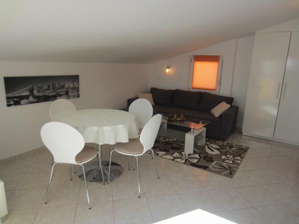 Apartments Sara bevinden zich in een nieuw en rustig deel van Medulin - Pošesi, en bevinden zich op slechts 100 meter van het strand. Het dichtstbijzijnde strand is rotsachtig, en de buurt zijn er andere soorten strand; grind, beton en zand. Wandelen langs het strand leidt naar het centrum van Medulin, waar in de avond biedt een verscheidenheid aan evenementen voor alle leeftijden. De appartementen zijn modern en vier van de vijf suites hebben een adembenemend uitzicht op de zee.