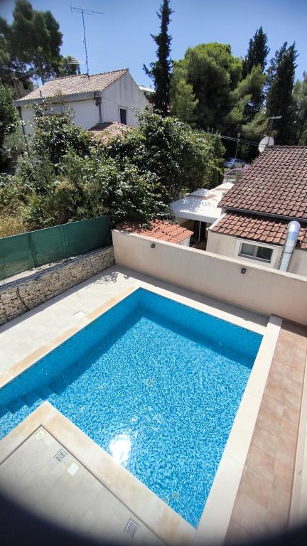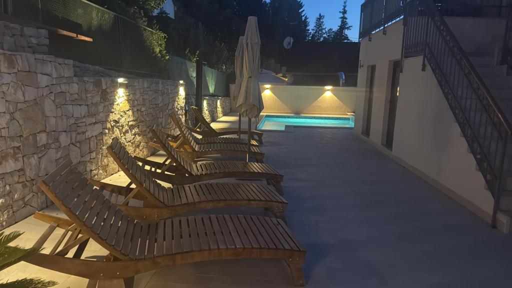 Welkom in ons ruime appartement Wisteria, gelegen op de begane grond in de rustige baai van Vlaška. In tegenstelling tot de meeste accommodaties in Milna, is ons appartement zonder trappen of hellingen te bereiken, ideaal voor gezinnen met kinderwagens of fietsers. Onze fietsen staan ook tot uw beschikking om de omgeving te verkennen. Het appartement is voorzien van uitzonderlijk hoge plafonds (3 m) en grote panoramische wanden, wat een zeldzaam gevoel van ruimtelijkheid geeft. Het is uitgerust met een hoogwaardige DanKuchen keuken en biedt compleet comfort met twee toiletten, twee bidets, een bad en een douche. Geniet van onze mediterrane tuin met een traditionele Dalmatische barbecue, een vijver en een weelderige blauweregen die in het voorjaar het hele terrein siert. Binnen een straal van 200 meter vindt u restaurants (OMO, Bago, Plaža) en cafés met een prachtig uitzicht. De catamaranpier ligt op slechts 200 meter afstand, vanwaar u gemakkelijk Split, Hvar of Dubrovnik kunt bezoeken. Er is gratis parkeergelegenheid. Geniet van ons verwarmde zwembad, dat tijdens uw vakantie voor extra luxe en comfort zorgt.