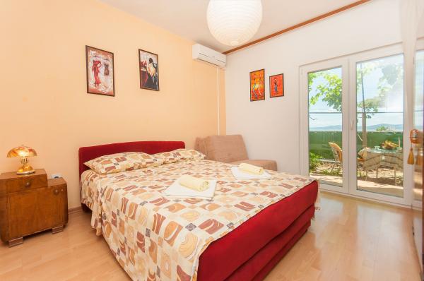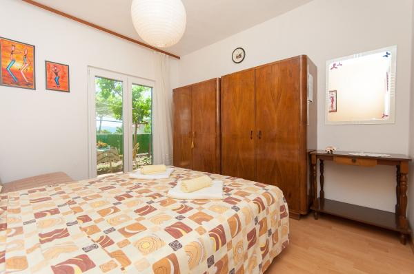 De appartementen bevinden zich in een klein, rustig dorp, ideaal voor familievakanties en onvergetelijke herinneringen. De appartementen zijn gelegen aan de zuidkant van het huis en hebben uitzicht op zee. Afstand van de zee en het strand ligt op 200 m. Het eerste appartement 4 2 bestaat uit een toilet, een keuken en twee slaapkamers, beide uitgerust met airconditioning. De keuken is gelegen in de voorkant van het huis, zodat je niet het gebied waarin u woont verwarmen. Andere appartement 2 1 bestaat uit een kamer met airconditioning, toilet en keuken, die ook is gevestigd in de voorkant van het huis. Aan de zuidkant van het huis is een grote tuin onder een wijnstok die een natuurlijke schaduw vormt, met de mogelijkheid van een barbecue. Er is gratis parkeergelegenheid op eigen terrein. De ingang is gemeenschappelijk. De kamers zijn gelegen aan de zuidkant van het huis, is een toilet voor het appartement 4 2 gelegen tegenover de kamer in de gang. Wi-Fi is beschikbaar in het hele pand.