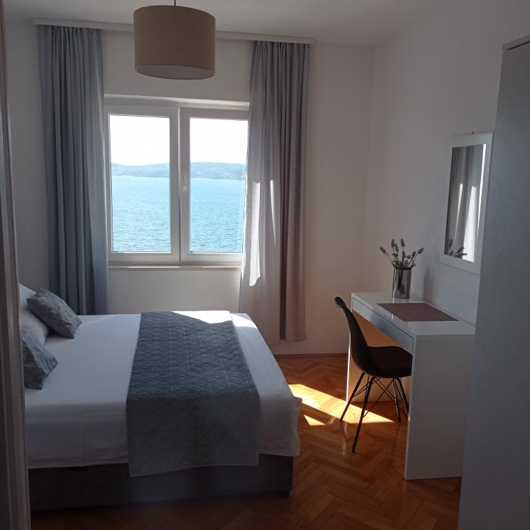 Wij zijn hier nu twee keer geweest, de accommodatie is prachtig, schoon, volledig uitgerust met airconditioning in elke kamer, een vaatwasser en wat ik het meest waardeer is de wasmachine. Mirko, Danijela en hun moeder zijn geweldige, vriendelijke mensen, altijd vrolijk en behulpzaam. Het uitzicht vanaf het terras is onvervangbaar. Ik heb niets te bekritiseren. Het voordeel is dat je met een strak figuur terugkomt, want de weg vanaf het strand is behoorlijk heuvelachtig, maar ik denk dat dat ook een voordeel is.