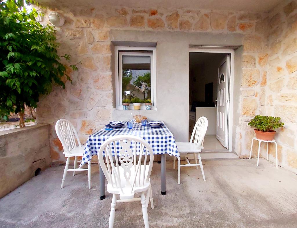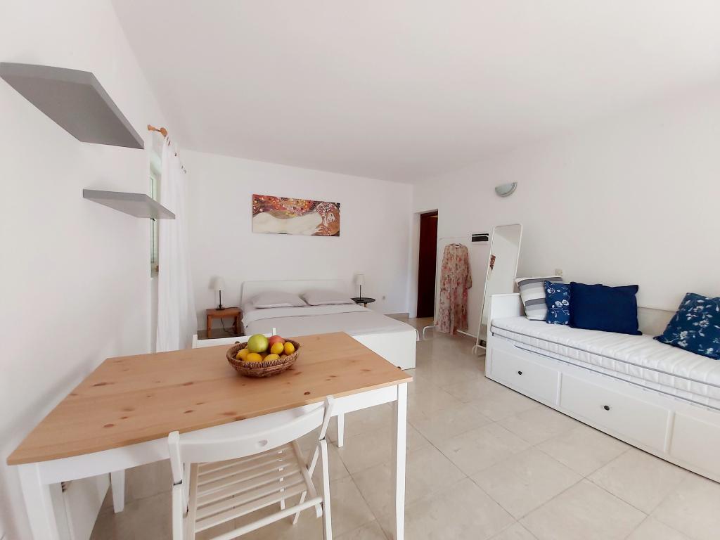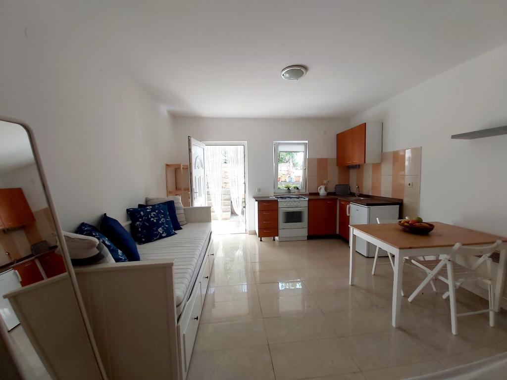 Studio-appartement met een terras van 12 m². Het appartement is geschikt voor 2 personen. Groot tweepersoonsbed, volledig uitgeruste keuken, eettafel, badkamer. Terras met eettafel. Beveiligde parkeerplaats voor één auto voor het appartement. Dicht bij het strand. Het appartement ligt op 5 minuten lopen van het strand van Slanica en op 7 minuten lopen van het centrum van Murter.
