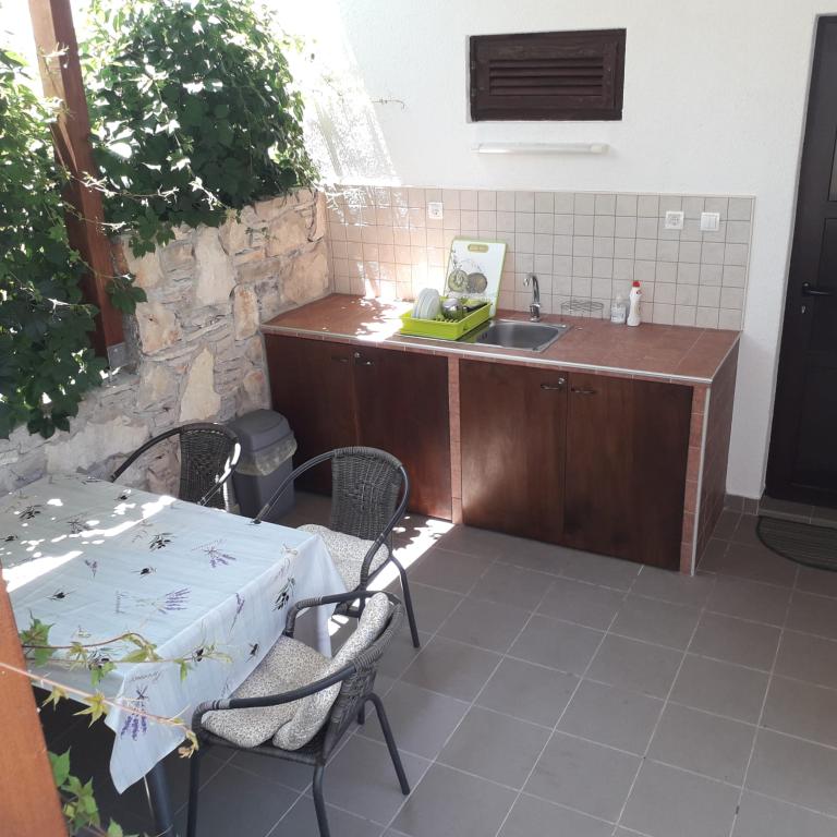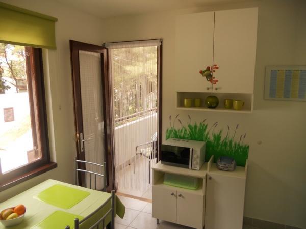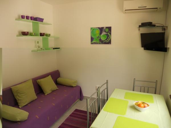 Het groene appartement is geschikt voor 4 tot 5 personen en beschikt over twee slaapkamers, een woonkamer, een keuken, een badkamer, een terras en een balkon. Gasten kunnen er in de schaduw buiten dineren. Het blauwe appartement is geschikt voor 4 personen en heeft één slaapkamer, een woonkamer, een keuken, een badkamer en een terras. Het blauwe appartement is tevens voorzien van een vaatwasser. De appartementen zijn modern, recent gerenoveerd en stijlvol ingericht. Het meeste meubilair is nieuw en speciaal voor elk appartement op maat gemaakt. Het strand ligt op 200 meter afstand en is te bereiken via een wandeling door een dennenbos. Er is geen drukke weg in de buurt. Op ongeveer 50 meter afstand bevindt zich een winkel en op 200 meter van het appartement een restaurant. Andere voorzieningen op het strand zijn een discotheek, diverse cafés en een bakkerij. Naast Nečujam raden we op Šolta ook Stomorska, Maslinica en talloze verborgen baaien aan.