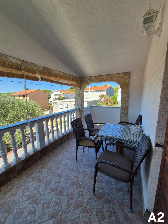 De appartementen zijn gelegen in een rustig deel (Bilotinjak 1), nabij de stad Nin. Appartementen zijn onlangs gerenoveerd. Elk appartement bestaat uit een badkamer, een slaapkamer met een tweepersoonsbed, een keukenlijn en een extra bed voor twee personen. Het appartement beschikt over een terras met uitzicht op het zuidwesten met uitzicht op de zee. Beide appartementen hebben een beveiligde parkeerplaats in de tuin. Barbecue en buitendouche zijn beschikbaar. Ruim, natuurlijk zandstrand, weg van huis, driehonderd meter, is geschikt voor kinderen.
