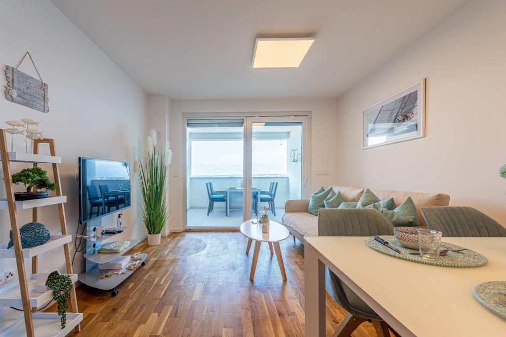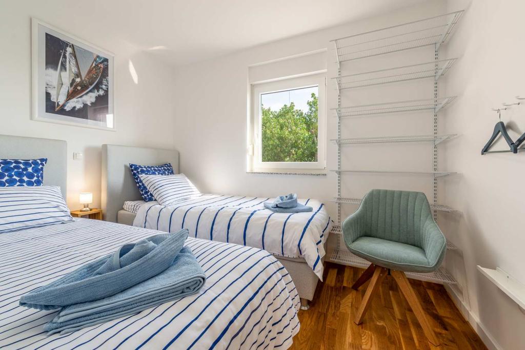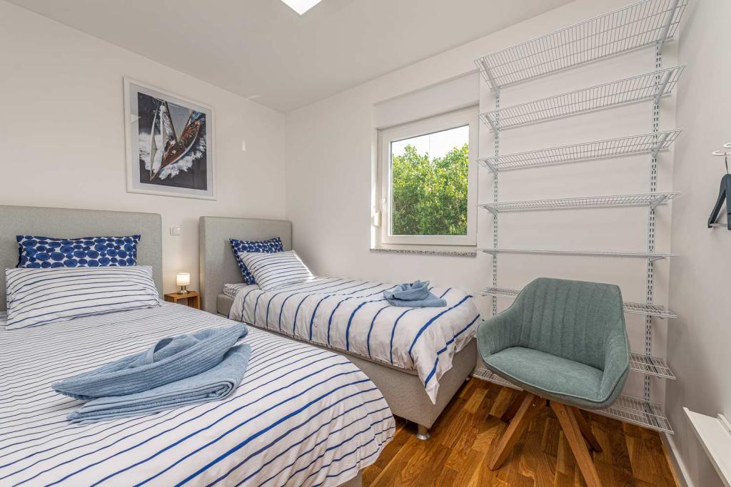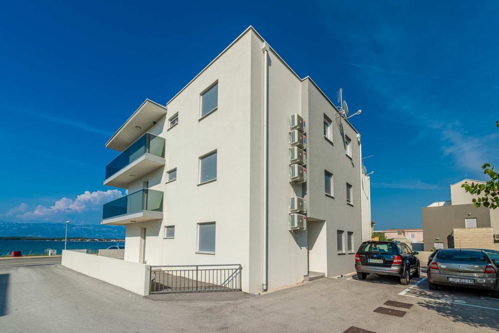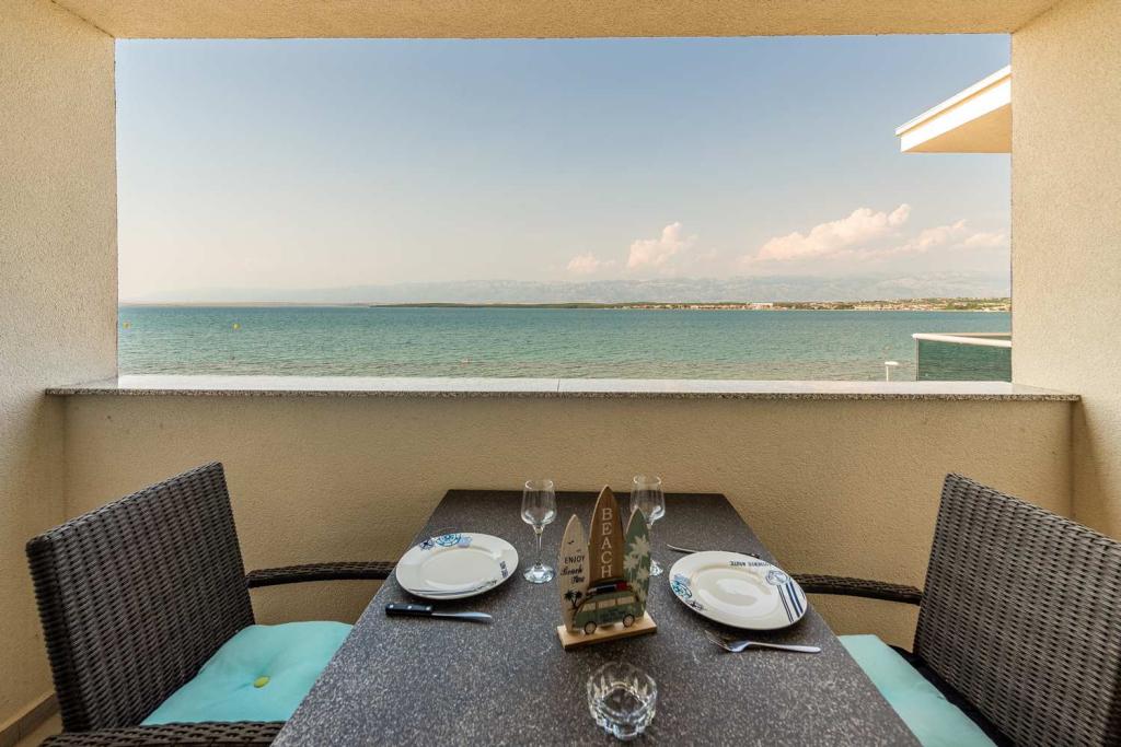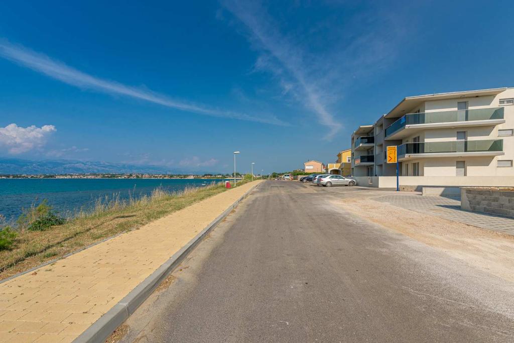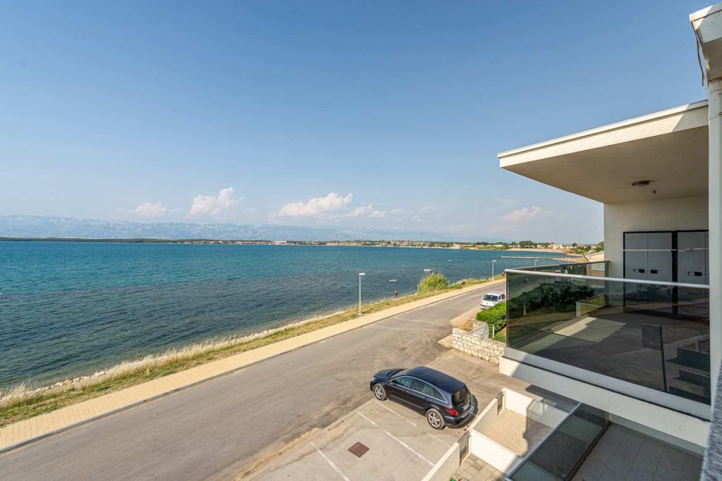 Eerste rij vanaf de zee! 10 meter van het voetgangersstrand. 5 minuten van het oude centrum van Nin. Modern appartement, mooi ingericht, zeer goed uitgeruste keuken (vaatwasser, broodrooster, waterkoker, elektrisch koffiezetapparaat, magnetron, koelkast met vriezer, oven, 4 inductiekookplaten). 1 slaapkamer met tweepersoonsbed + 1 slaapkamer met 2 eenpersoonsbedden. Douche en wasmachine. Fantastisch uitzicht op zee vanaf uw terras.