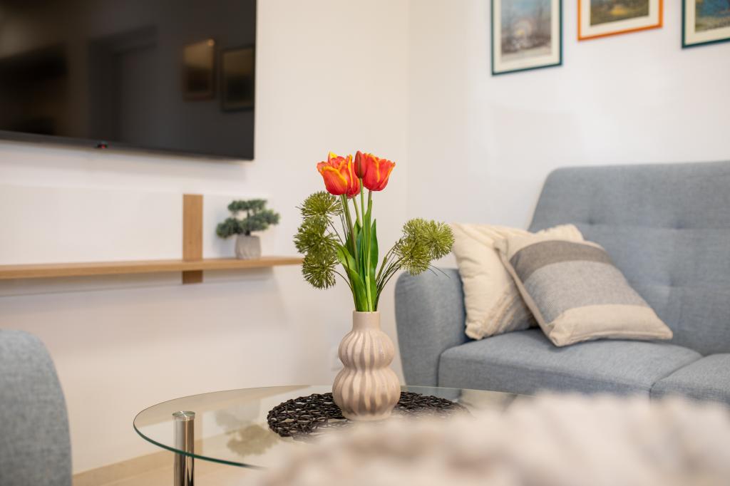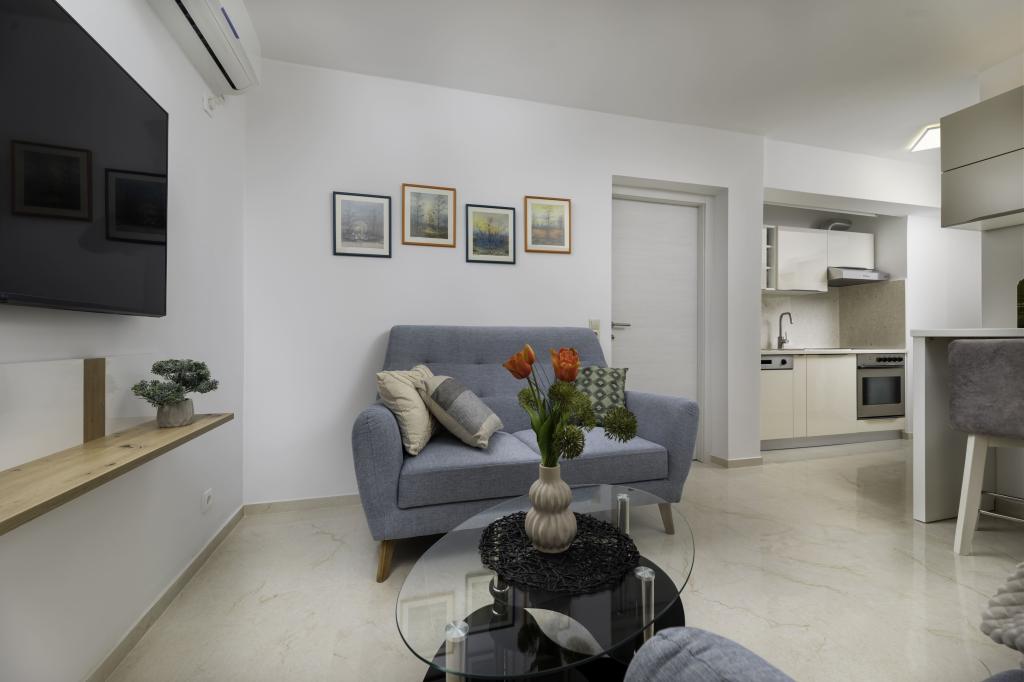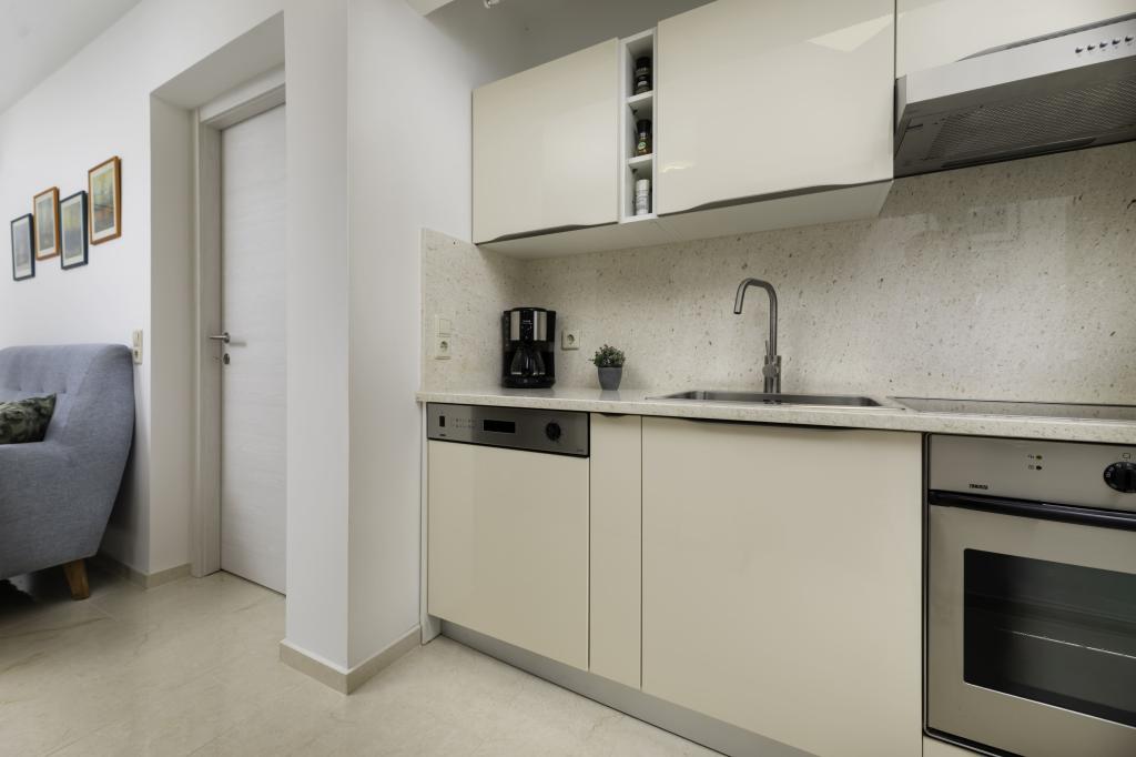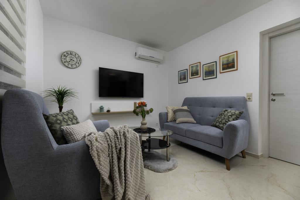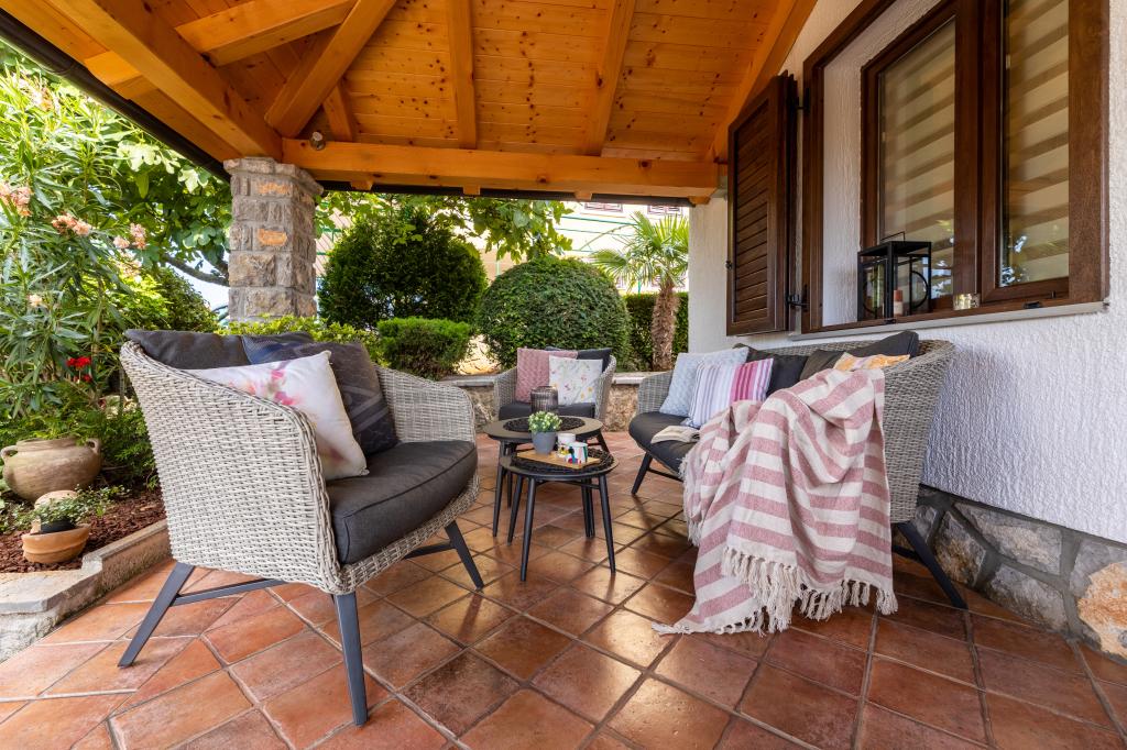 Dit onlangs gerenoveerde appartement op de begane grond ligt in een rustig deel van Njivice op het eiland Krk en biedt de ideale combinatie van comfort en een ontspannen mediterrane sfeer. Het is perfect voor gezinnen of kleinere groepen die willen genieten van een vakantie aan zee in alle rust en privacy. Het appartement beschikt over twee ruime slaapkamers, een moderne badkamer en een apart toilet. Een van de slaapkamers heeft een kleine ruimte met een extra bed. Een volledig uitgeruste keuken en een gezellige woonkamer bieden alles voor een ontspannen verblijf. Een bijzonder pluspunt is het overdekte terras, omgeven door groen, ideaal voor een kopje koffie in de ochtend, een familiemaaltijd of ontspanning in de avond. Gasten hebben toegang tot airconditioning, wifi, privéparkeergelegenheid, een buitendouche en een barbecue. Het strand ligt op slechts 600 meter afstand en in de buurt vindt u restaurants, winkels en alle nodige voorzieningen voor een zorgeloze vakantie. Geniet van de kristalheldere zee, wandelingen langs de kust en de authentieke eilandsfeer die de perfecte balans biedt tussen rust en activiteit.
