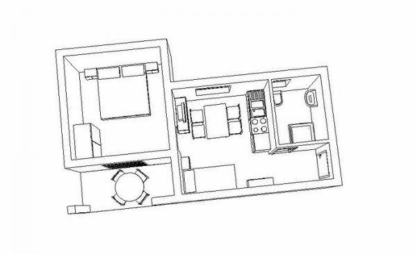 Appartement voor twee personen + twee extra bedden (48 m2)