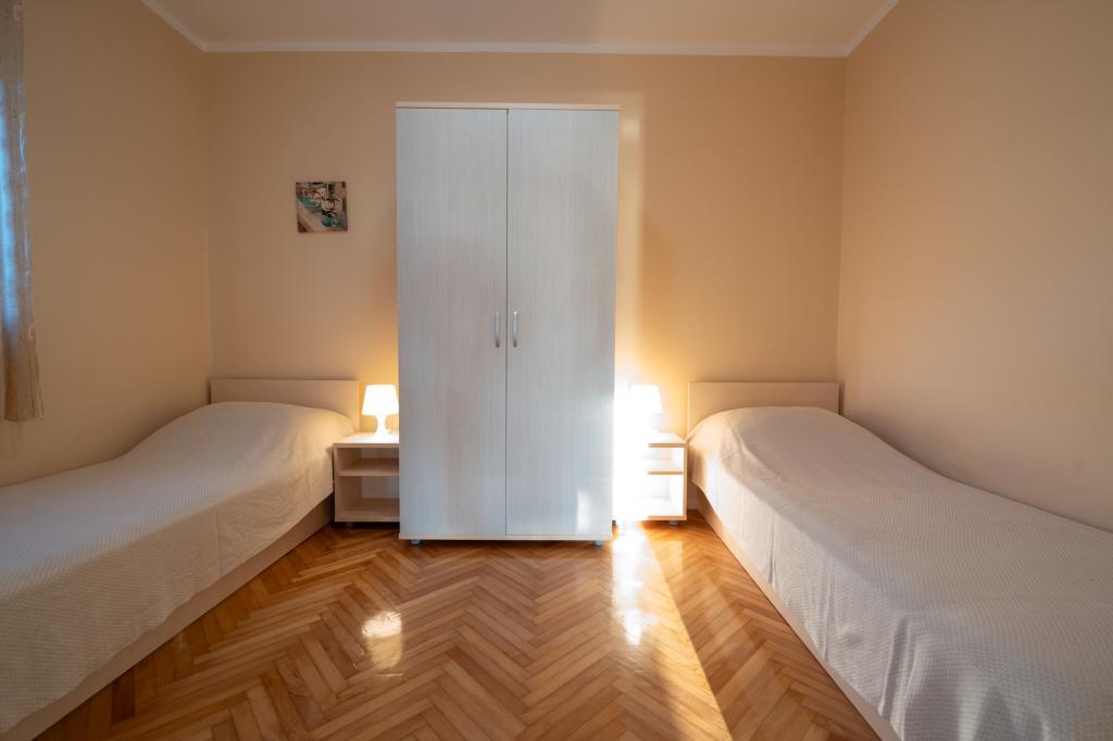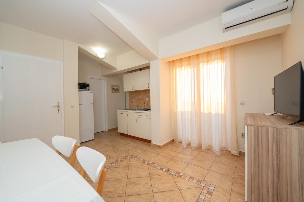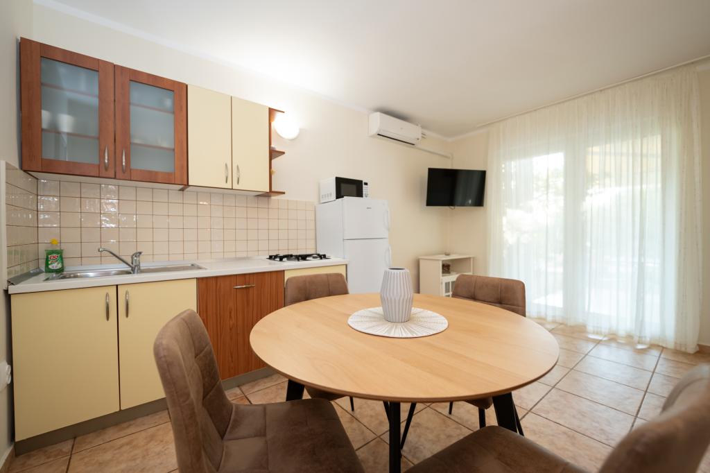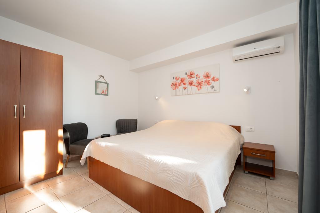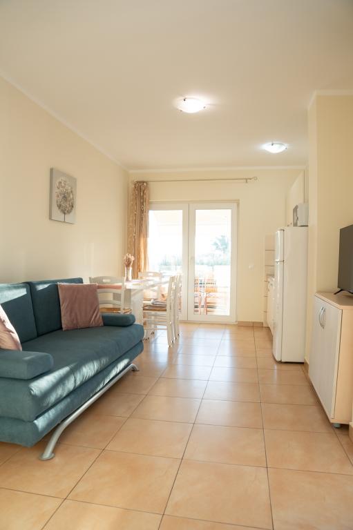 Geweldige locatie, een beetje verwijderd van de drukte van de stad, de eigenaren zijn geweldig, onopvallend. Het appartement heeft een aparte ingang, voor het huis is er een grote tuin met ligbedden en speelplaatsen voor kinderen, en de zee is heel dichtbij.