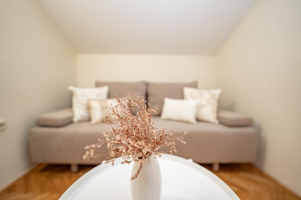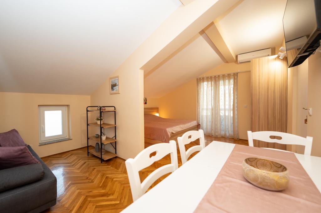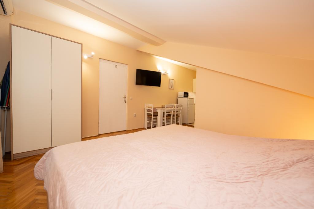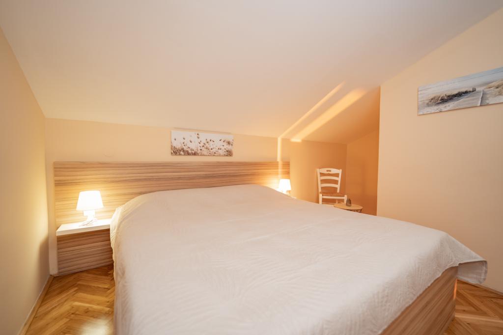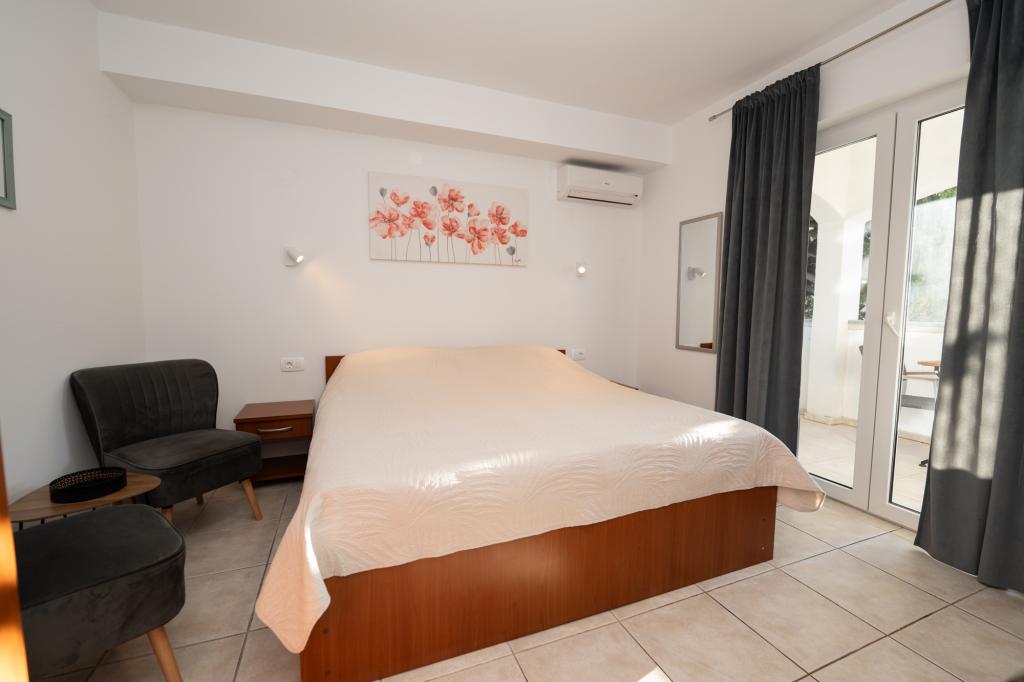 Geweldige locatie, een beetje verwijderd van de drukte van de stad, de eigenaren zijn geweldig, onopvallend. Het appartement heeft een aparte ingang, voor het huis is er een grote tuin met ligbedden en speelplaatsen voor kinderen, en de zee is heel dichtbij.