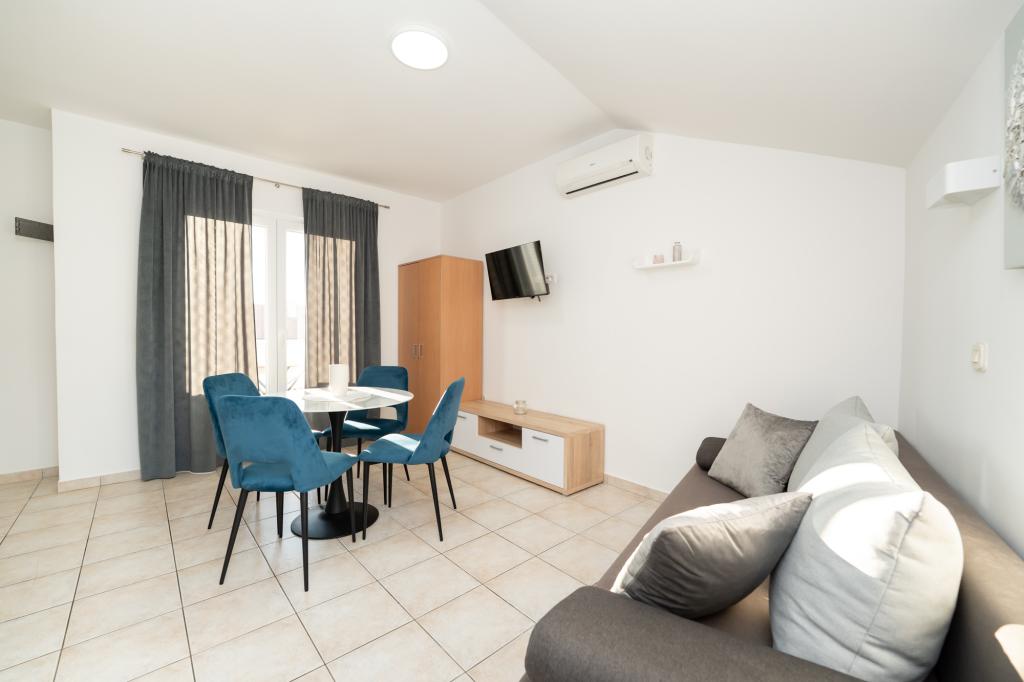 Geweldige appartementen, goed uitgerust. Een groot voordeel is de tuin en speeltuin waar kinderen kunnen spelen. De appartementen liggen zeer dicht bij de zee, wat een groot pluspunt is voor kinderen. Rustige buurt, ca. 20 minuten lopen naar het stadscentrum, dat bruist van het leven. De gastheer is hartelijk en behulpzaam. Ik raad het met een gerust geweten aan en ik hoop dat we er ooit nog eens zullen komen.