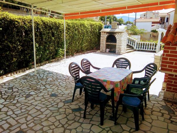 Volledig ingericht appartement van 100 m2 met een barbecue tuin. Het ligt in een rustig deel van Novi Vinodolski, van het appartement is 400 m naar het strand of 5 minuten lopen, 700 m naar het stadscentrum, 500 m naar het eerste restaurant, naar de dichtstbijzijnde winkel 50 m. Het heeft drie slaapkamers. De twee kamers hebben een klein balkon en de derde slaapkamer heeft een terras met uitzicht op de zee. Het heeft twee badkamers, een grote en een kleinere. De keuken is volledig uitgerust met een vaatwasser, een waterkoker, een magnetron, een koelkast met vriesvak, een fornuis en een filterkoffiezetapparaat. In de keuken is er een eetkamer met een grote tafel en stoelen. De eetkamer heeft een klein balkon met uitzicht op de tuin en de zee. Woonkamer met airconditioning, uitgang naar een terras met uitzicht op de zee en een extra bed. De faciliteit heeft WI-FI, einde van het object is er parkeergelegenheid voor 2-3 auto's. In de voortuin is er een zithoek en een barbecue.
