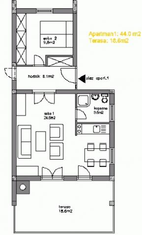 Twee-slaapkamer appartement met een groot terras, in een rustig deel van Novi Vinodolski, op minder dan twee uur rijden van Zagreb. Barbecue onderhandeld. Let op: Appartement 1 en Appartement 2 verbinding kunt maken en delen. Ideaal voor twee gezinnen!