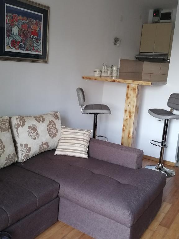 Ons studio-appartement Novi bevindt zich op de begane grond van een gezinswoning waar zich nog 2 andere appartementen bevinden. De studio heeft een keuken met keukengerei, eet- en kookgerei, een broodrooster, een waterkoker, een badkamer en een woonkamer met een slaapbank die 's avonds verandert in uw slaapkamer. Er is een terras met een prachtig uitzicht op de zee en het eiland Krk. In de tuin staat een barbecue die beschikbaar is voor gebruik door alle gasten van het huis en de gastheren.