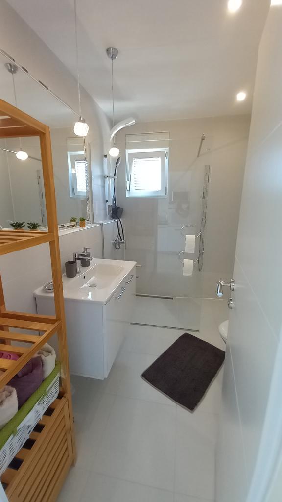 Ik mis dat uitzicht nu. !!! Het appartement is ruim voorradig, alles is aanwezig behalve een strijkijzer en föhn, deze dient u zelf mee te nemen. Alles is met smaak ingericht, modern en schoon. Een steraftrek, omdat er geen airconditioning in de kamer onder het dak is, kon de ventilator de hitte niet weerstaan. Mevrouw Svob was erg aardig en behulpzaam. Het was niet ver van het strand. En naar het stadscentrum, waar u 's avonds tal van restaurants en cafés kunt vinden, is het ook slechts 5 minuten rijden. Konsum Market en bakker ook in het stadscentrum. Lidl is ook verkrijgbaar in de stad. Parkeerplaatsen waren er ook. Al met al kan ik alleen maar aanraden! Groeten aan de familie Svob!