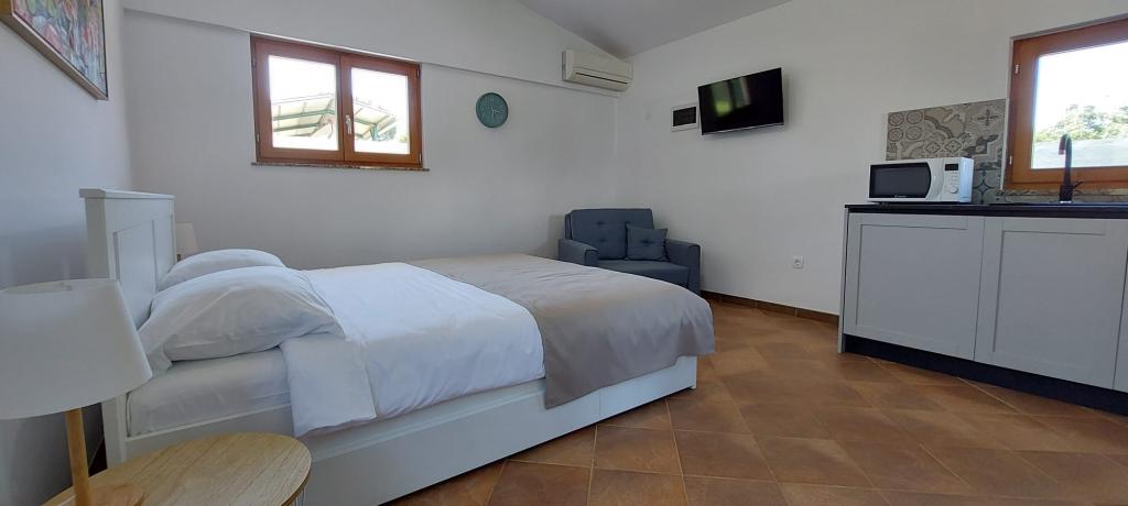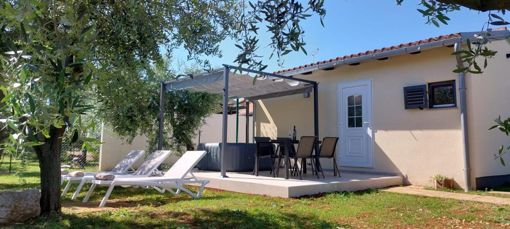 Ons onlangs gerenoveerde, kleine maar charmante studiohuis ligt in een rustige landelijke omgeving net buiten Novigrad. Deze accommodatie met een bed, een extra bed en een badkamer biedt alle gemakken van thuis. De volledig uitgeruste keuken bevat alles wat u nodig heeft om heerlijke maaltijden te bereiden, met de mogelijkheid om te dineren aan de binnenbar of buitentafel, waar u kunt genieten van de ruime en besloten tuin (900m2). Het huis ligt op een rustige plek, maar het is slechts 5 minuten rijden naar de stad en de stranden. Het is ideaal voor koppels en kleine gezinnen.