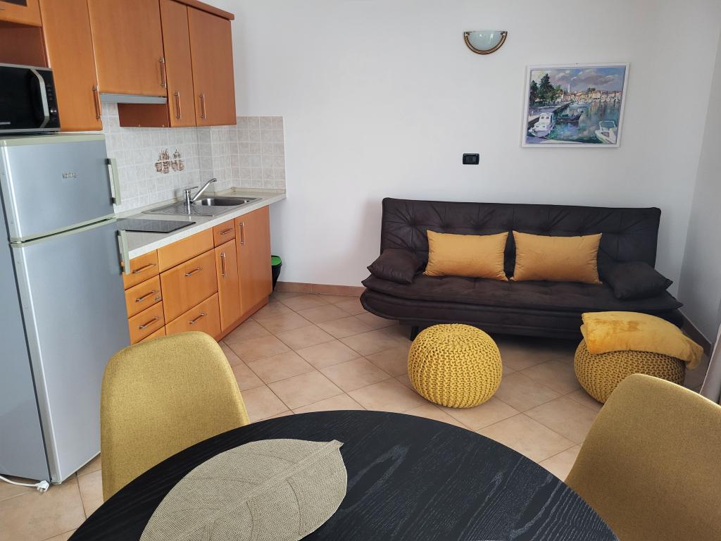 Om optimaal comfort te garanderen, verhuren wij de appartementen uitsluitend voor maximaal twee personen. Het huis met twee appartementen ligt in een rustig deel van Novigrad. De nederzetting is zeer eenvoudig te bereiken. De afstand tot de hoofdweg is net lang genoeg om geen last te hebben van het verkeer. De straten van de nederzetting worden alleen gebruikt door de lokale bevolking en gasten, er is vrijwel geen verkeer. Er is voldoende parkeergelegenheid voor het huis. Twee appartementen in het huis zorgen voor een hoge standaard aan rust en veel rust en hartelijke contacten. Ze worden het hele jaar door ondersteund. Elk appartement heeft een oppervlakte van 40 m² en een aparte ingang. Het appartement op de begane grond beschikt over een eigen terras, en het appartement op de bovenverdieping over een balkon. Het appartement is bedoeld voor twee personen. Er is een aparte slaapkamer met een tweepersoonsbed. De keuken is volledig uitgerust. De appartementen zijn voorzien van airconditioning. De appartementen zijn voorzien van centrale verwarming en daardoor het hele jaar door geschikt voor fietsliefhebbers. Huisdieren zijn niet toegestaan.