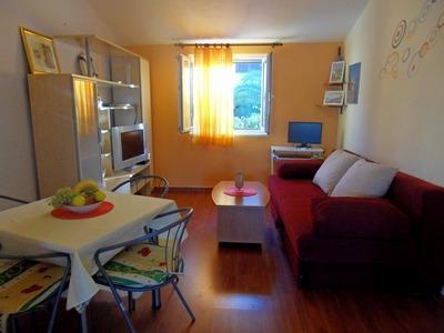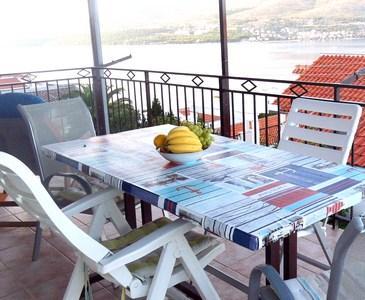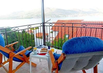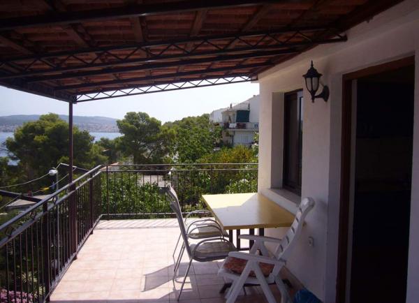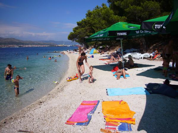 Volledig ingericht appartement in Okrug Donji op het eiland Ciovo, vlakbij de stad Trogir. Het appartement is gelegen op de eerste verdieping en heeft een prachtig uitzicht op de zee. Het appartement is ideaal voor gezinnen, heeft een slaapkamer met tweepersoonsbed, een kleine kamer met een dubbel bed voor twee personen, een woonkamer met uitschuifbaar bed, keuken, badkamer - met een douche en een groot half overdekt terras met uitzicht op de zee. Het appartement bevindt zich onder de hoofdweg (niet nodig om de weg over te steken naar de zee te krijgen), de zee is slechts ongeveer 80 meter afstand van het appartement. NB - toegang tot het strand onder de appartementen is vrij steil. Grote strand ligt op slechts 15 min lopen van het appartement.