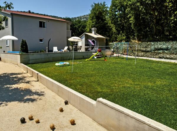 Inlusief wel Toeristenbelasting.Onze gasten hebben een eigen zwembad, een ruimte met fitnessapparatuur, outdoor, de traditionele barbecue, speeltuin voor bowlen en gazon met schommel. Beddengoed en handdoeken zijn ook inbegrepen. Dit is een uitstekende keuze voor families, avonturiers en groepen vrienden, want de locatie is in een rustige omgeving en is goed uitgerust en biedt veel ruimte en ligt nabij de stad Omis (5km), rivier Cetiina waar u kunt raften, zip line, canyoning, vrij klimmen of gewoon genieten van de prachtige omgeving die een rivier canyon biedt. De stad Split met zijn oude gedeelte, Paleis UNESCO Diocletianus die je ziet is slechts 21 kilometer, of een half uur, kan dit altijd voor elk wat wils te vinden.