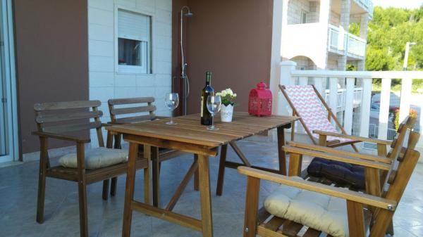 Het appartement is gelegen in een rustige plek. . Het appartement is niet nieuw gebouwd en mooi ingericht. bestaat uit cc45m2 de woonkamer en een mooi terras cc35m2 met uitzicht op de zee en de eilanden. . afstand van de zee cc 900m. . ook vanuit Omis cc 5 km