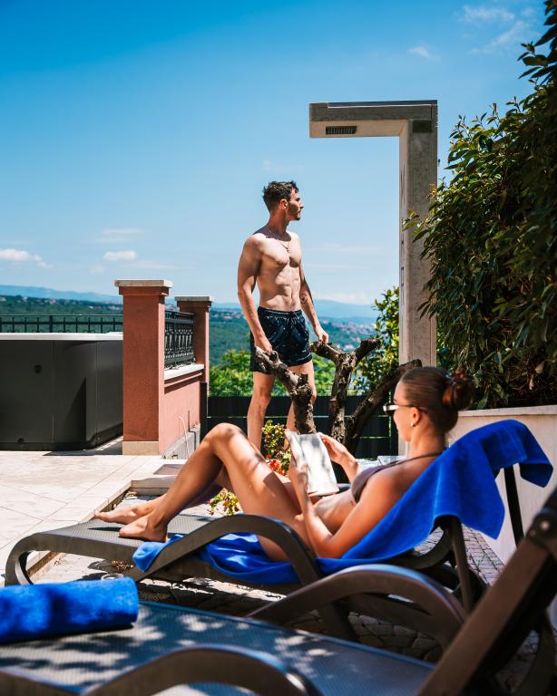 Een mooi en modern juweeltje gelegen aan de Opatija Riviera. Het huis is recent gebouwd, dus alles is bijna als nieuw. Het interieurontwerp is erg mooi en is ontworpen door mijn vrouw Alexandra, een binnenhuisarchitect. Een van de meest verbazingwekkende dingen in dit huis is het 180 graden uitzicht vanaf het terras op de Kvarnerbaai, de Istrische kust en de eilanden Krk en Cres. Puur adembenemend. Een foto kan de schoonheid van het uitzicht niet overbrengen. Zonsopgangen en zonsondergangen zijn bijzonder, en diners op het terras behoren tot de mooiste momenten van de dag. Je slaapt als een roosje want 's nachts is het erg rustig en aangenaam en 's nachts komt er een licht briesje uit de zee. Alle kamers zijn voorzien van airconditioning. Belangrijk zijn ook de supercomfortabele bedden in alle kamers, en de binnen- en buitenjacuzzi en douche op het terras met prachtig uitzicht. De Opatija Riviera staat bekend om zijn micro-mediterrane klimaat. De steden aan de Rivièra strekken zich uit van het vissersdorp Volosko, dat op slechts een paar minuten lopen van het huis ligt, tot het prachtige Opatija, dat te voet bereikbaar is. Eén van de dingen waar u van moet genieten is de ongeveer 15 km lange promenade langs de Lungomare-zee. Langs de boulevard vindt u een aantal kleine strandjes en kleine baaien waar u kunt zwemmen, afgewisseld met prachtige paleizen die dateren uit de tijd van Oostenrijk-Hongarije. Het huis ligt op ongeveer 400 meter van verschillende stranden in Volosko. Het water is erg schoon en turkooisblauw. Veel plaatsen aan de Rivièra liggen op een klein eindje rijden en bieden vele gastronomische ervaringen. De supermarkten in de buurt hebben een grote selectie aan eten, waaronder heerlijk brood, lokale wijnen, producten en vlees. Ook toprestaurants liggen op een paar minuten lopen van het huis. Het eten is geweldig, vooral de visselectie. Er is een verse vis- en groentemarkt in de buurt.