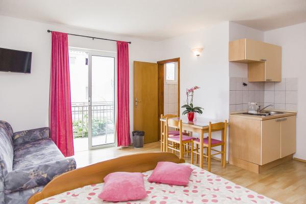 Villa Mirela is gelegen in Orebic op het schiereiland Peljesac. Gelegen in een rustige omgeving, in de buurt van het strand Trstenica. Villa biedt 7 appartementen. Ook is er een grote parkeerplaats, een grote tuin met gras, die geschikt is voor spelende kinderen, barbecue en open haard - dat kan worden gebruikt door de gasten. Villa is niet aan de hoofdweg, die ideaal is voor jonge kinderen en anderen die behoefte hebben aan een ontspannen en rustige vakantie. Talloze gasten die via onze Villa verstreken en dat is blij om terug te zijn de reden waarom we dat het toerisme in onze familie traditie en kwaliteit kan zeggen. Luisteren naar de wensen van de gasten, met een constante investering, we hebben een comfortabele accommodatie die kan worden genoten van alle die ons bezoeken geschapen. Als gastheren, blij om te praten en geeft de nodige informatie. Wij streven ernaar om uw verblijf zo aangenaam mogelijk te maken en we willen weer terug te gaan en ons aanbevelen aan hun vrienden. Appartement A8 is gelegen in het kleine dorp van Trstenik - 20 km van Orebic - dit appartement is uitstekend geschikt voor liefhebbers van rust en stilte. .