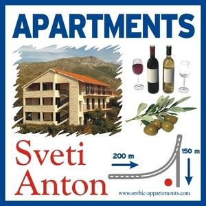 Apartments St Anton zijn gelegen in het mooiste deel van de Adriatische kust, op de zuidelijke hellingen van het schiereiland Peljesac, aan de ingang van het stadje Orebic. Volledig ingerichte en moderne appartementen in een rustige omgeving, gelegen op 400 m van het zand- en kiezelstrand en 15 minuten lopen van het centrum. Wij bieden accommodatie in 8 appartementen, met uitzicht op zee, Peljesac kanaal en het eiland Korcula. Alle appartementen zijn voorzien van een keuken, satelliet-tv, radio, WiFi, haardroger. De derde verdieping is voorzien van airconditioning. Met behulp van het internet in de prijs inbegrepen. Grill met tuinmeubilair is beschikbaar voor gebruik voor de gasten. Alle gasten hebben een parkeerplaats. Huisdieren zijn toegestaan in de appartementen. Daarnaast bieden wij een wasservice. Onze gasten zijn altijd tot uw dienst, met een ontspannen sfeer en authentieke ervaring van bestemmingen om hun verblijf in appartementen St. Anton omgetoverd tot een onvergetelijke ervaring.