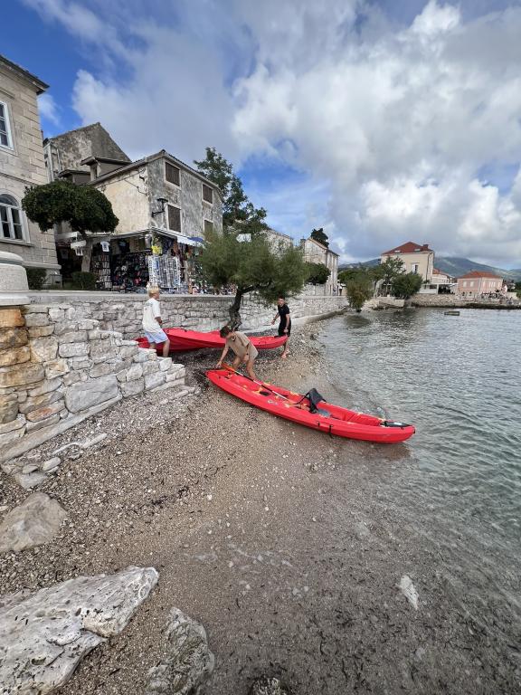 86 TRAPPEN naar het strand - stenen trappen af, naast olijf- en citroenbomen en met uitzicht op de blauwe zee - Strandliefhebbers zullen genieten. EXCURSIES Korčula, Mljet en de omliggende eilanden zijn gemakkelijk te bereiken (de haven van Orebić ligt op slechts 250 m afstand) Geniet van de smaken van de mediterrane keuken en de Italiaanse Dolce Vita (allemaal binnen een straal van 300 meter) - GRATIS: Zeekajaks - Stand Up Paddle Boards - Parasols en strandmatten. - WELKOM in het CENTRUM van OREBIĆ en mis de kans niet voor een perfecte vakantie. EN ZOALS FOTO'S meer zeggen dan woorden - KIJK ER NAAR en oordeel zelf. - APPARTEMENTEN Volledig voorzien van airconditioning - Wi-Fi - SAT-TV - Keuken - Badkamer met douche - Privéparkeerplaats - Balkons met zonneschermen - Beddengoed en handdoeken GRILL Onze BBQ-ruimte en tuinterras omgeven door citroenbomen is volledig uitgerust en een geweldige plek om vis of gegrild vlees te bereiden.