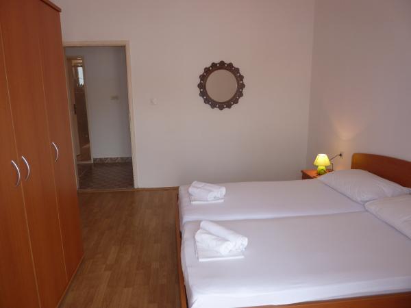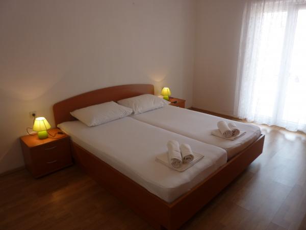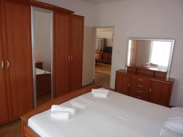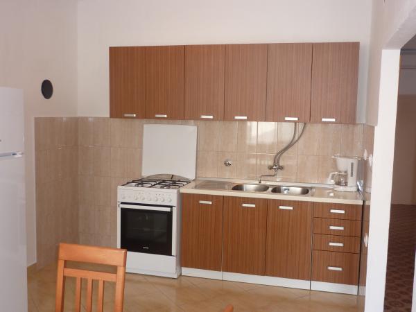 House - verhaal waarin je beschikbaar zijn 3 slaapkamers, een grote keuken, toilet, badkamer en een groot terras. Het huis heeft parkeergelegenheid voor 3 auto's. De faciliteit ligt op 5 minuten lopen van het centrum van de stad. In de stad van Pag zijn er twee stranden, een is 10 minuten lopen, en nog eens 5 minuten lopen van het hotel. Als u wilt bezoeken een rustiger strand buiten de stad gastheer zal een van hen aanraden. De inrichting is gelegen in een rustige omgeving en is ideaal voor een gezinsvakantie.